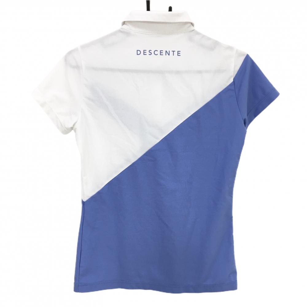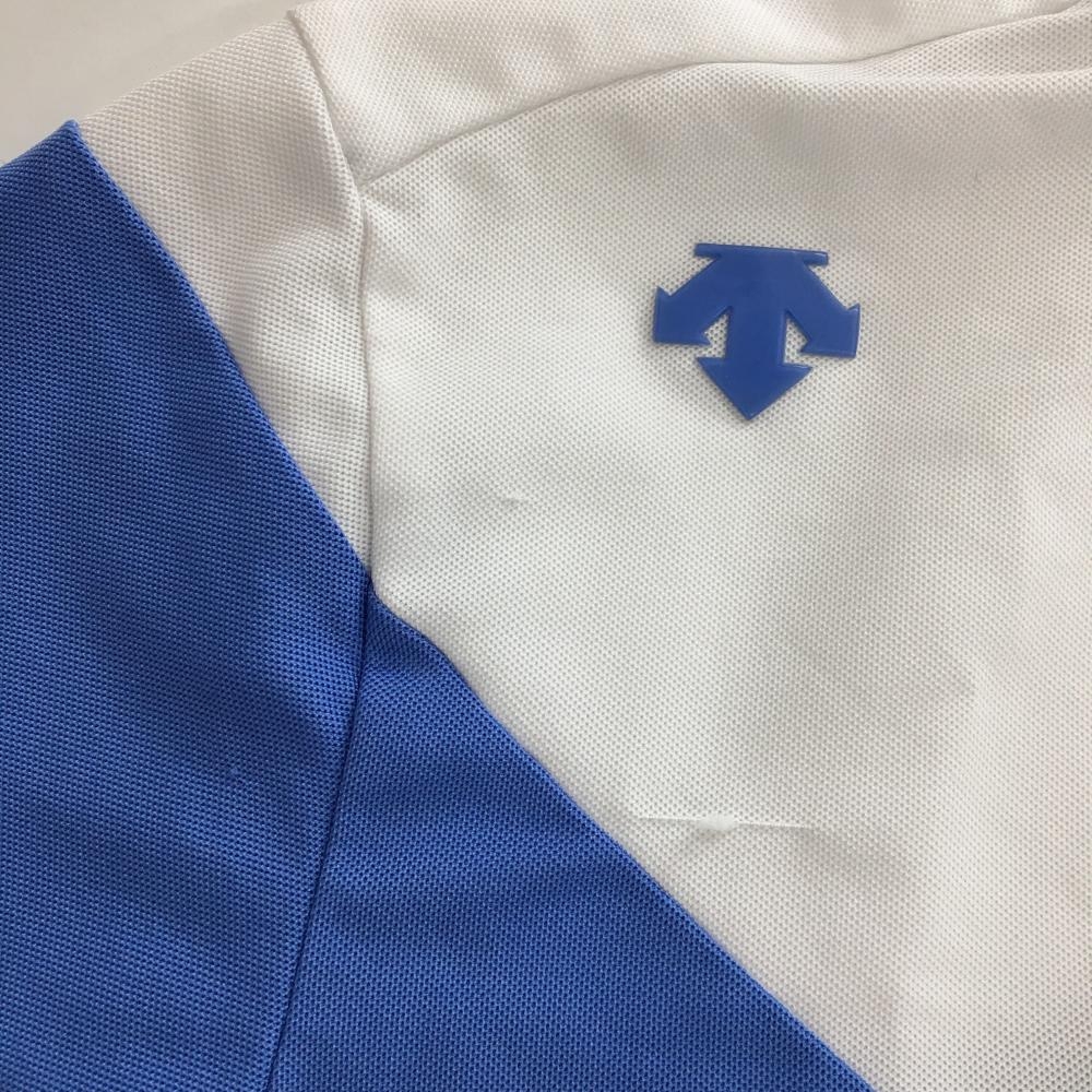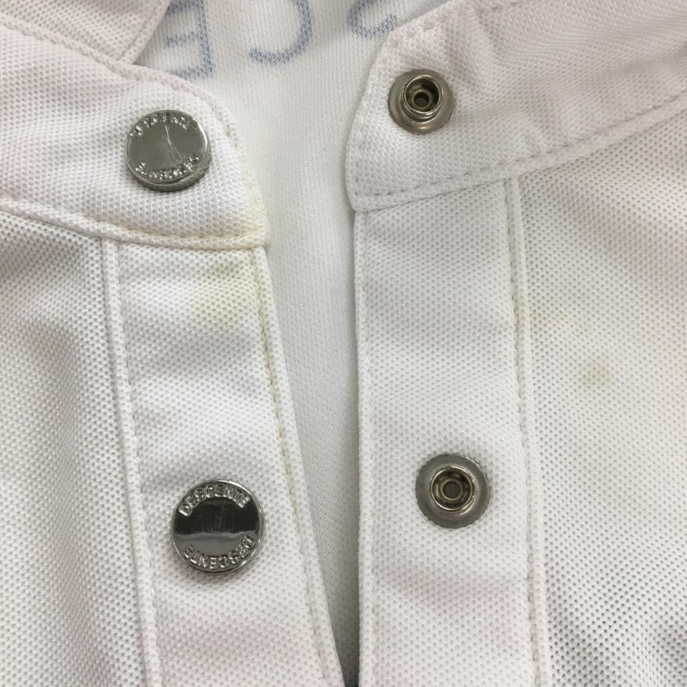 デサントゴルフ 半袖ポロシャツ 白×ライトブルー 肩ロゴ スナップボタン 中田英寿 レディース M ゴルフウェア DESCENTE
