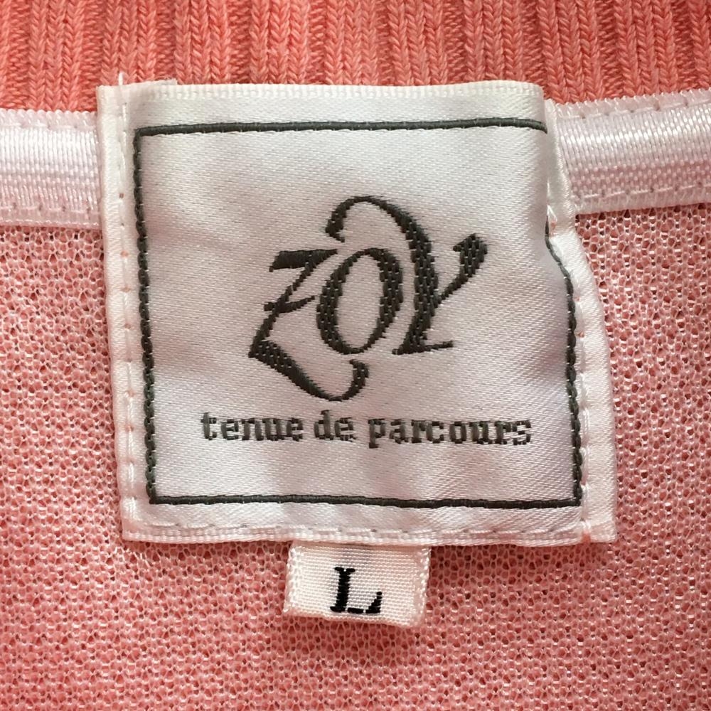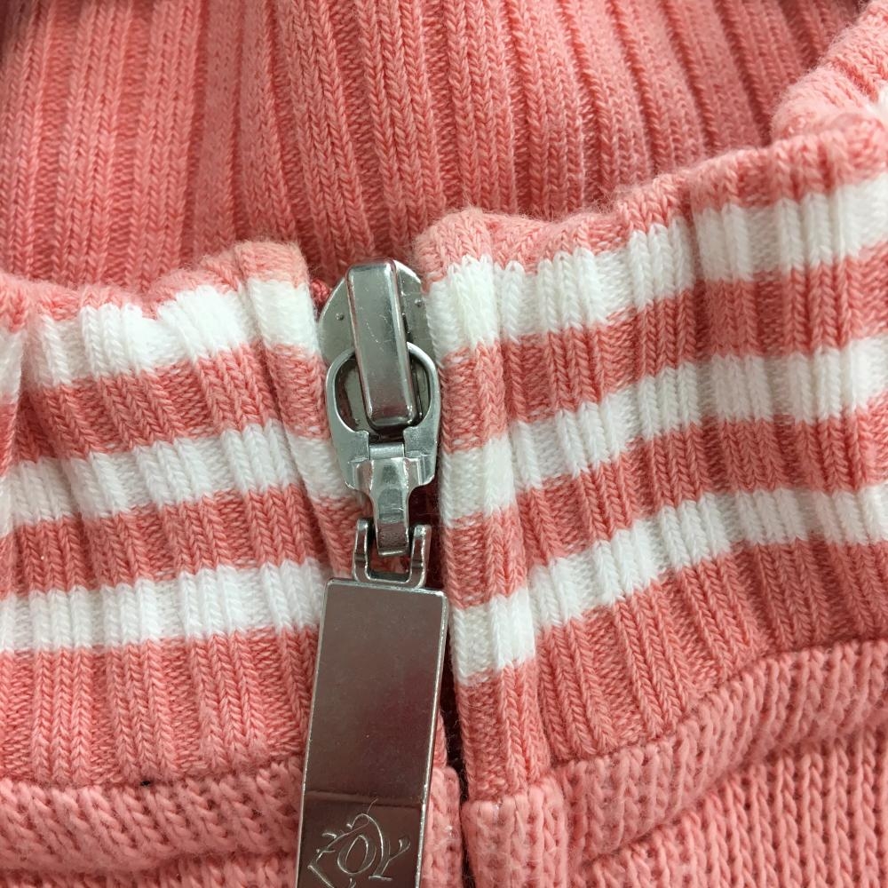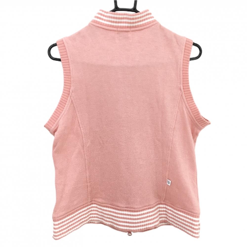 ゾーイ ニットジップベスト ピンク×白 ネック・裾ライン 胸ポケット レディース L ゴルフウェア ZOY