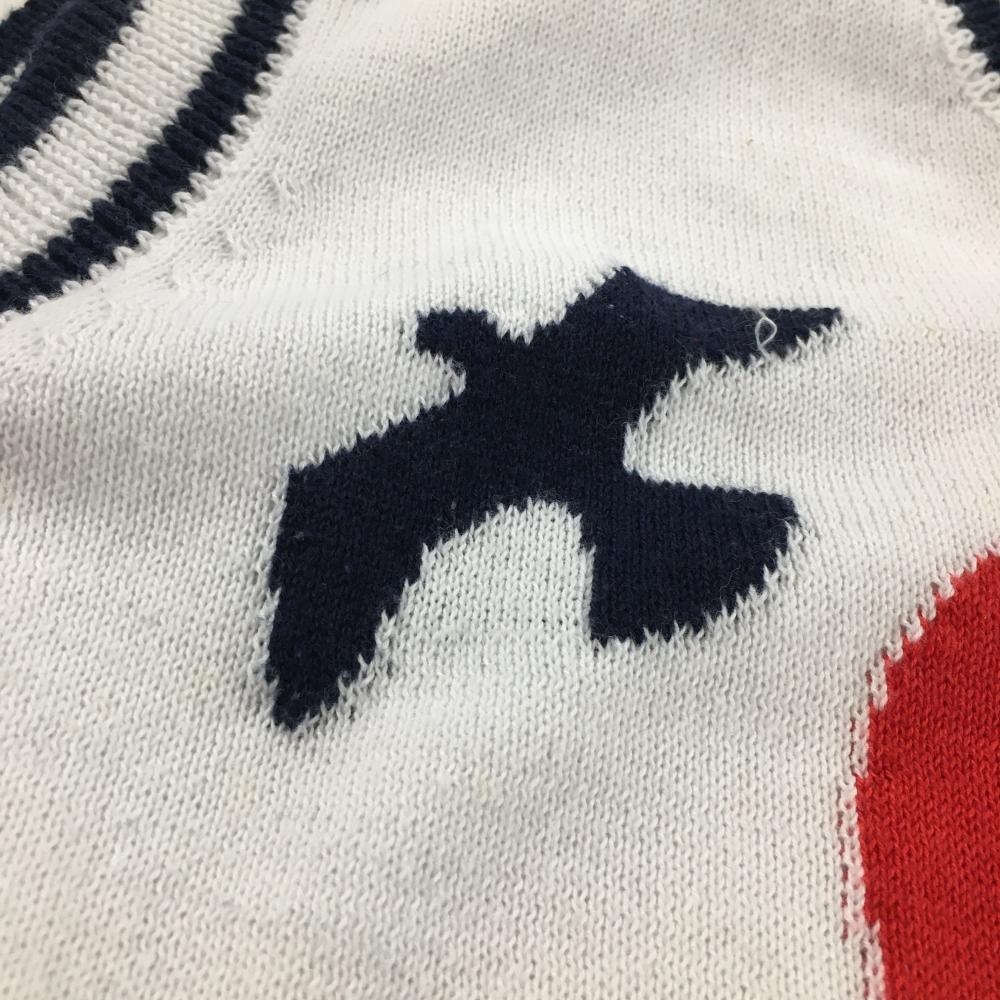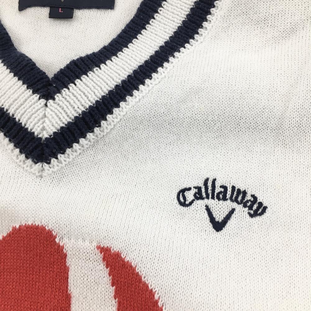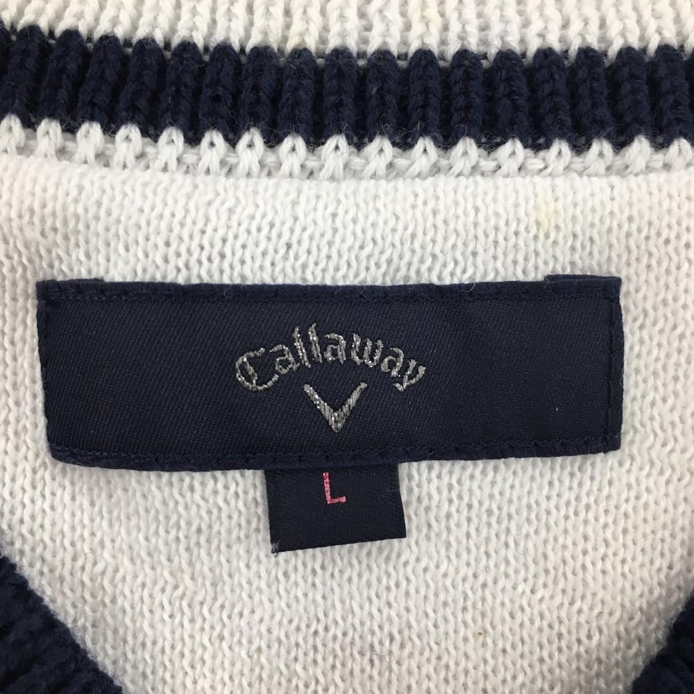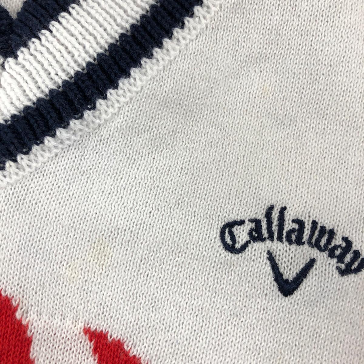 キャロウェイ ニットベスト 白×ネイビー Vネック 気球 レディース L ゴルフウェア Callaway