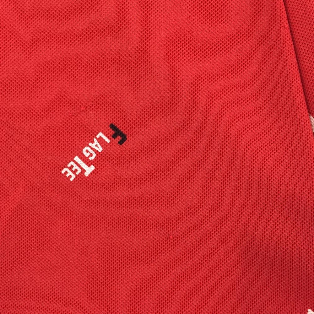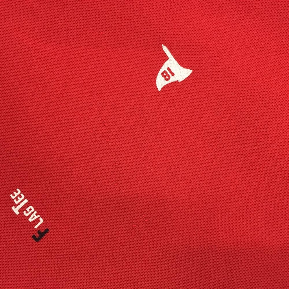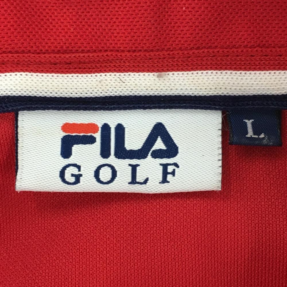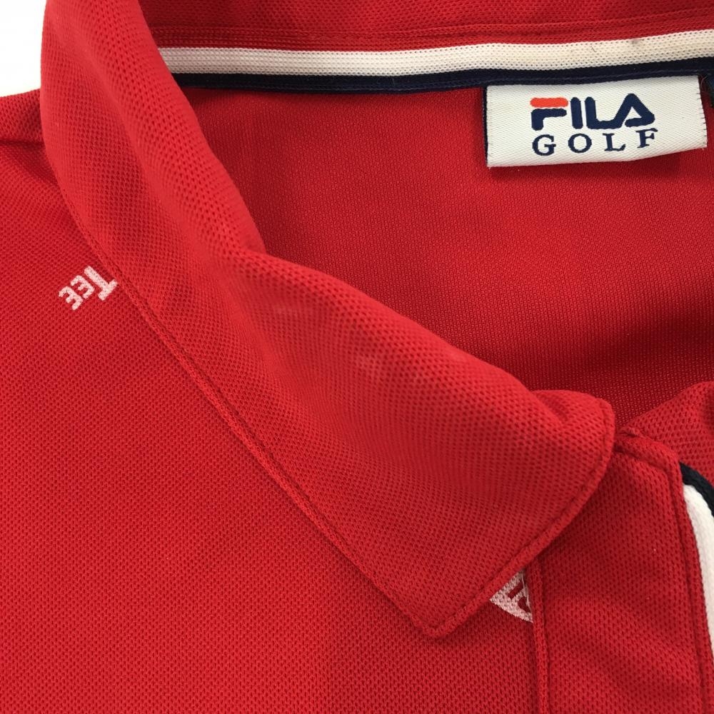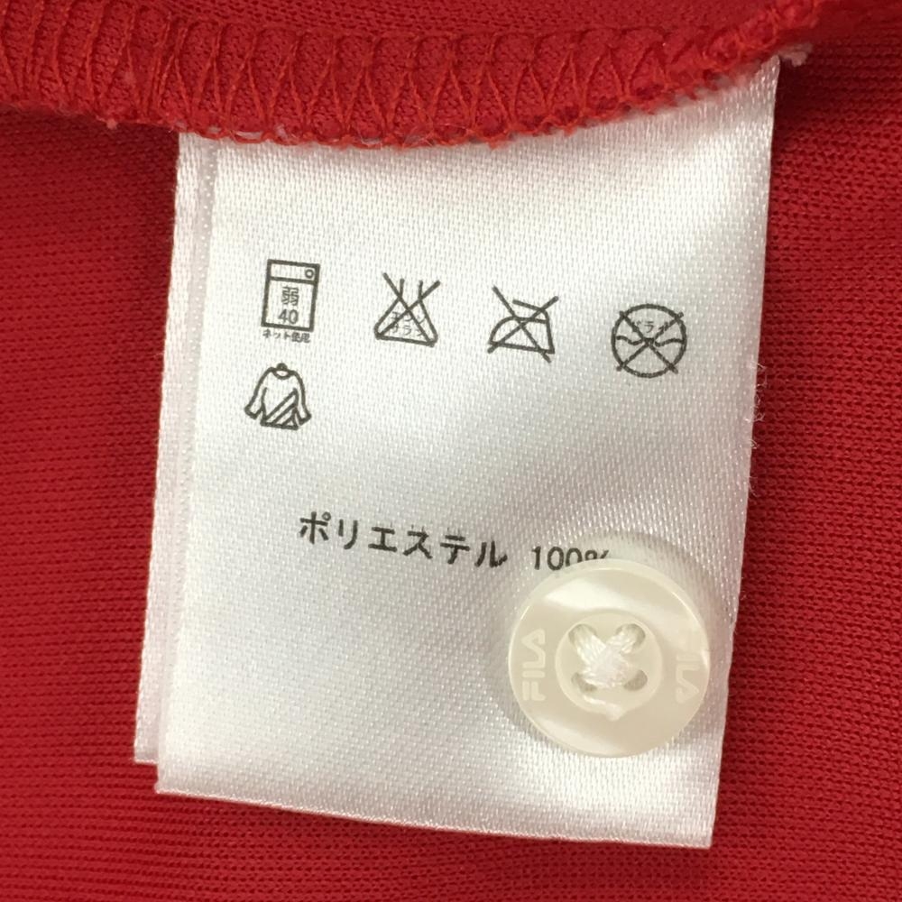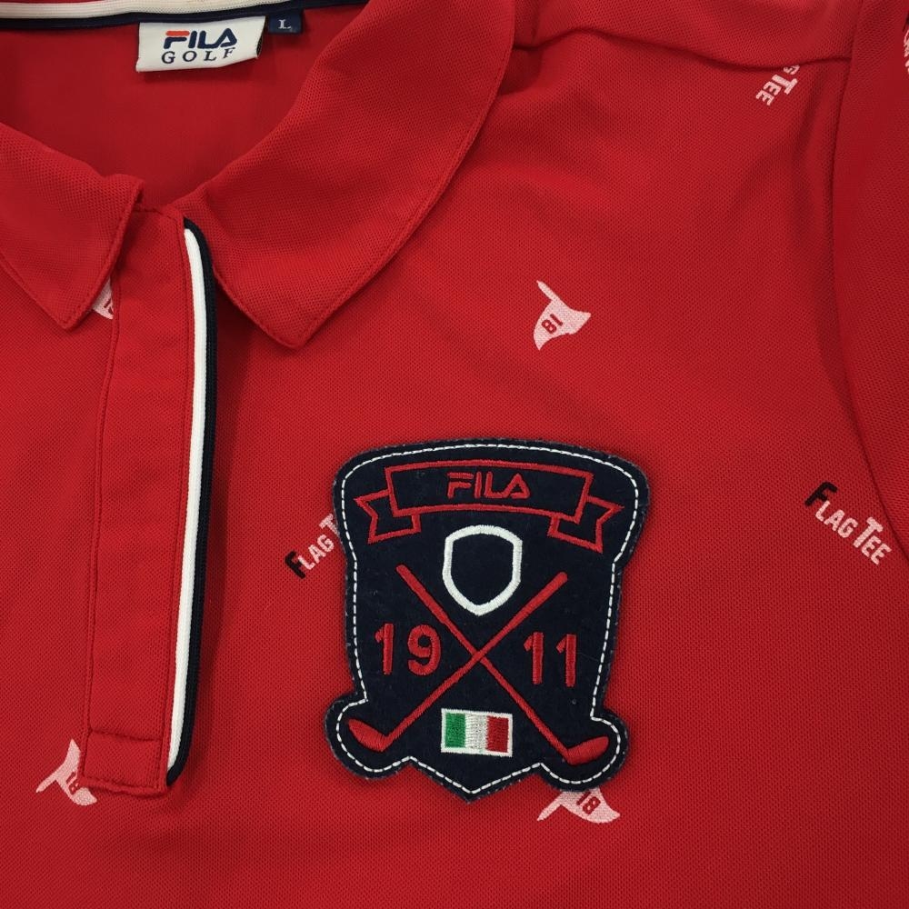 フィラゴルフ 半袖ポロシャツ レッド×白 フラッグ総柄 ビッグワッペン レディース L ゴルフウェア FILA GOLF
