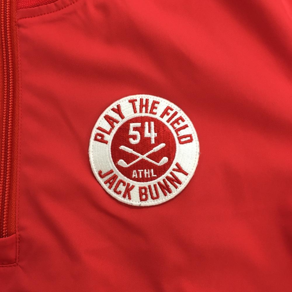 ジャックバニー 2WAYブルゾン レッド×白 ハーフジップ 裏地メッシュ 袖着脱可 レディース 2(L) ゴルフウェア Jack Bunny