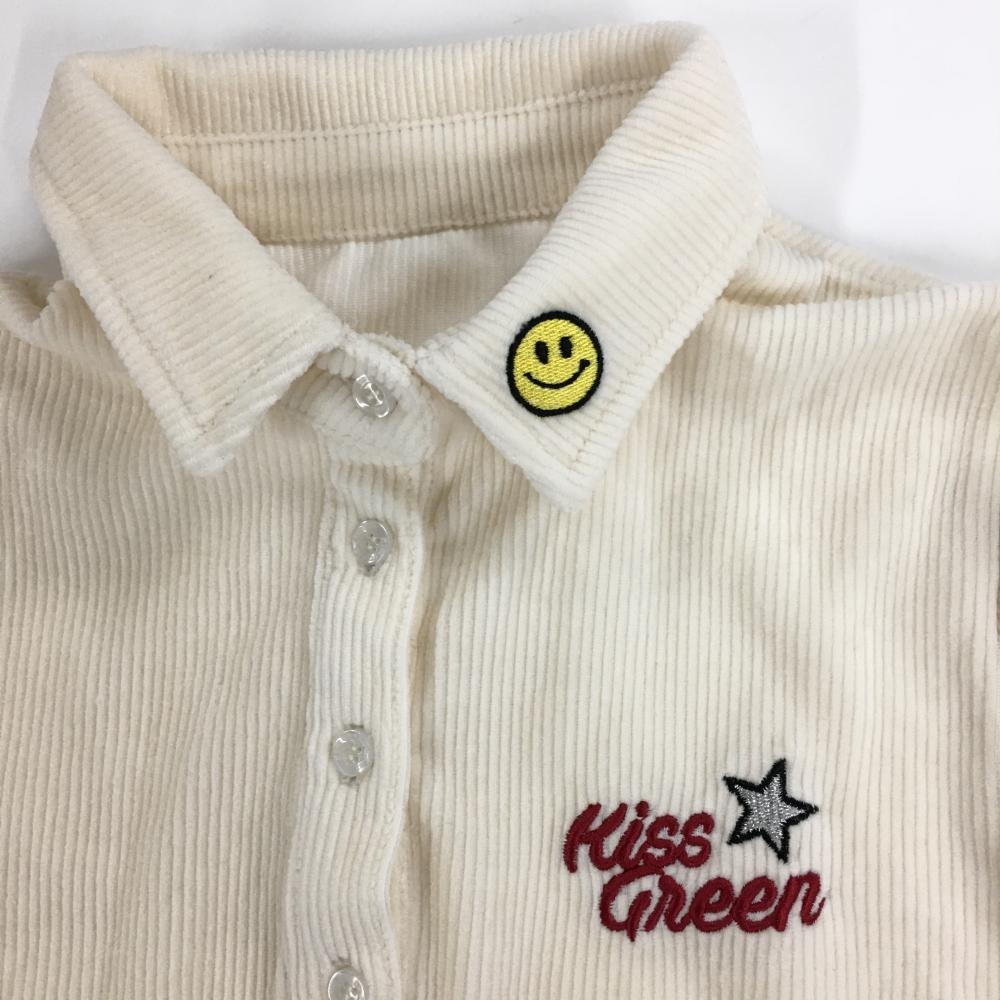 キスオンザグリーン 長袖ポロシャツ アイボリー コーデュロイ調 ロゴ刺しゅう レディース 2(M) ゴルフウェア kiss on the green