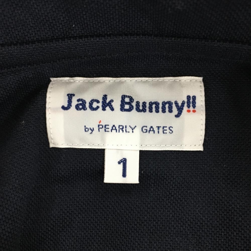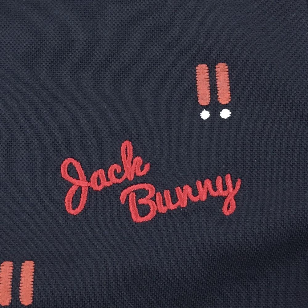 【超美品】ジャックバニー 半袖ポロシャツ ネイビー×レッド ビックリマーク ロゴ刺しゅう レディース 1(M) ゴルフウェア Jack Bunny