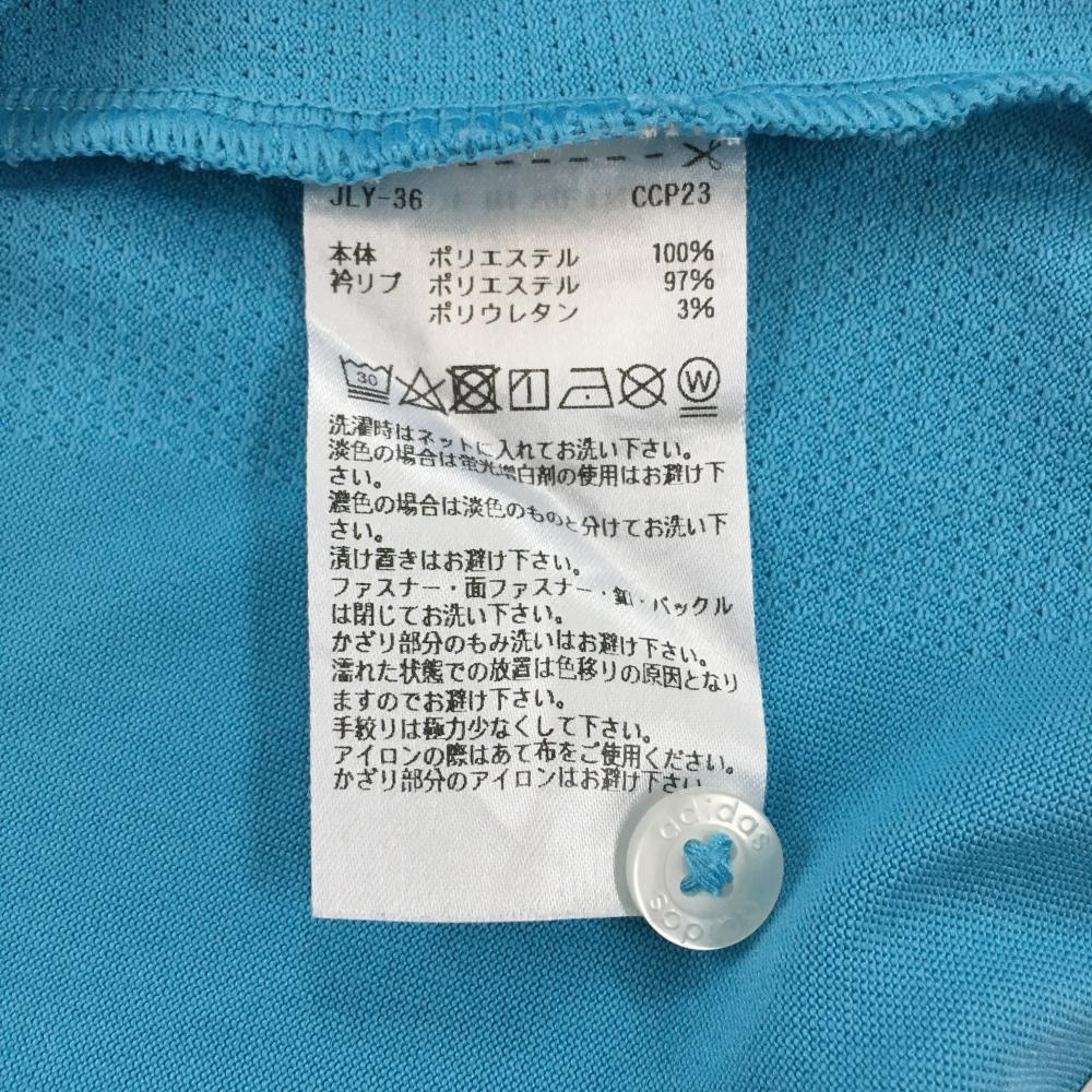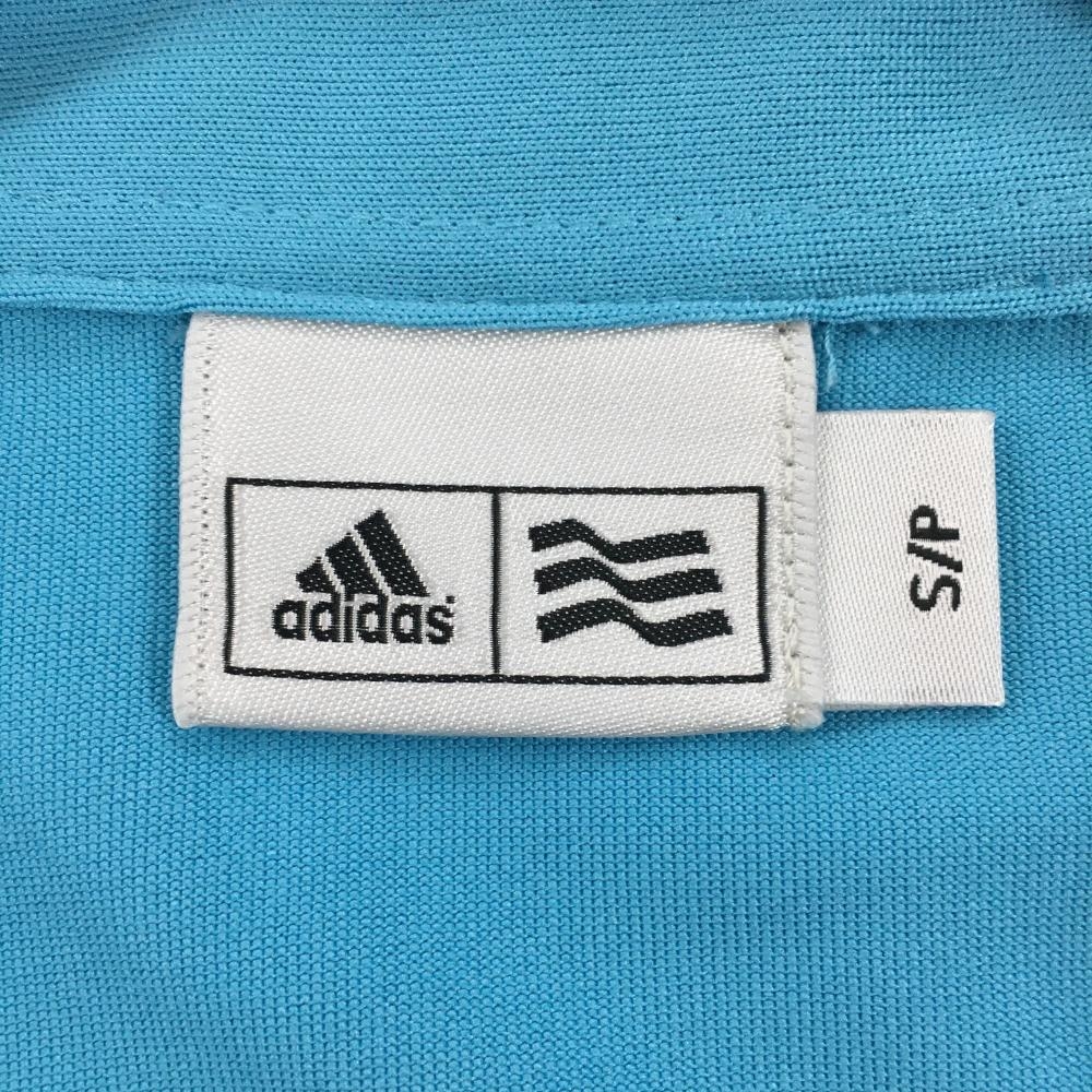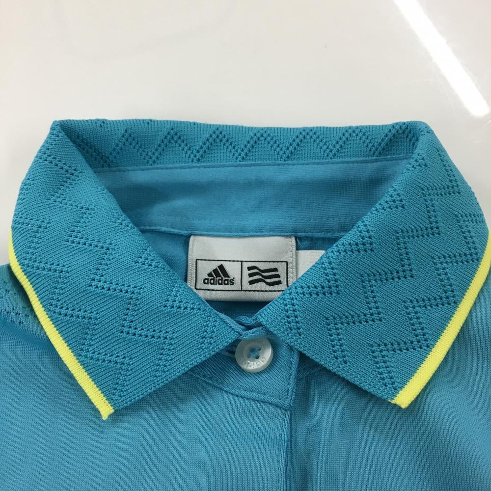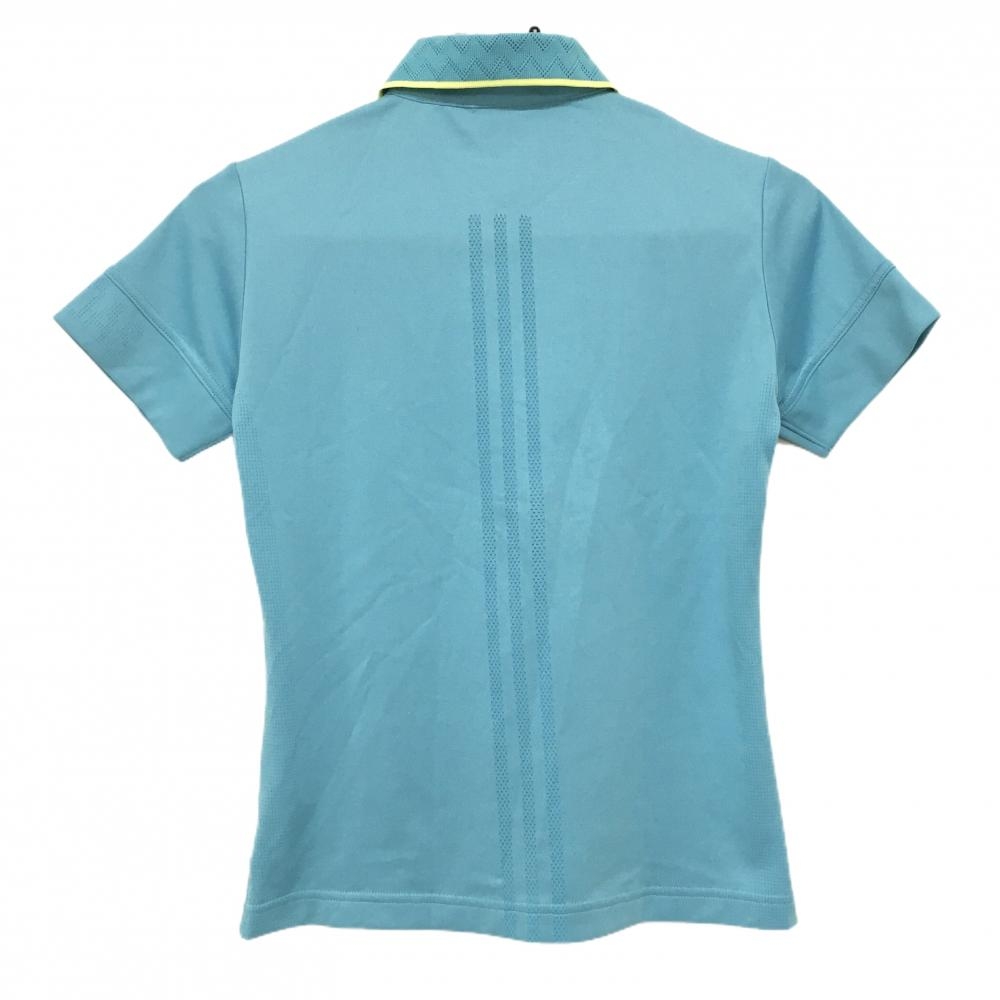 【美品】アディダス 半袖ポロシャツ ライトブルー×イエロー 一部メッシュ調 胸元ロゴ レディース S ゴルフウェア adidas