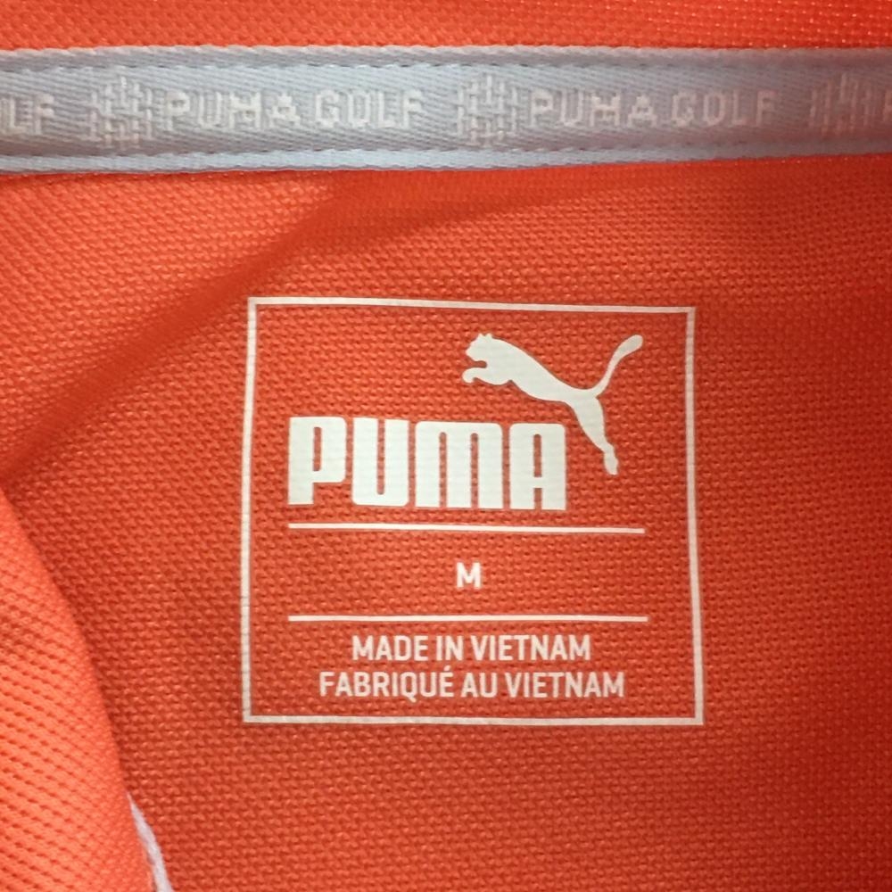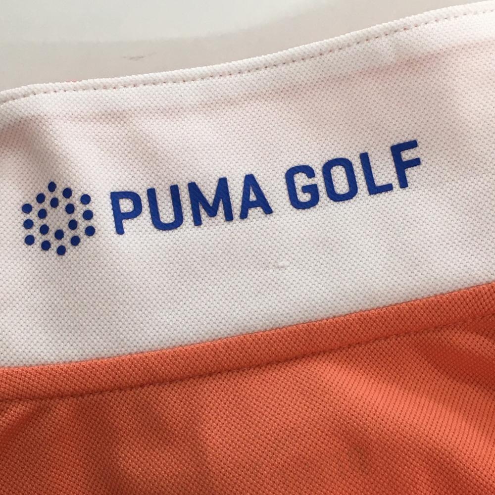 【美品】プーマ 半袖ポロシャツ サーモンピンク ロゴ白 襟裏ロゴ レディース M ゴルフウェア PUMA