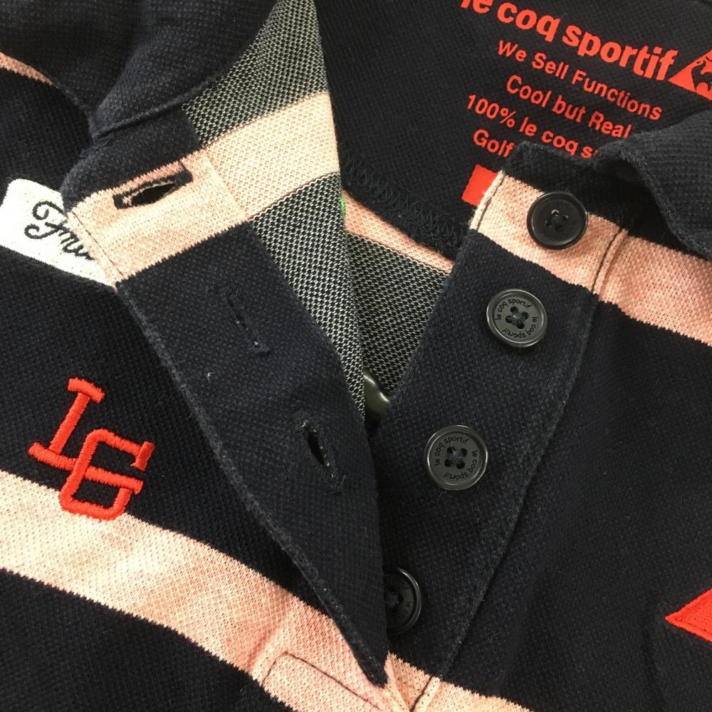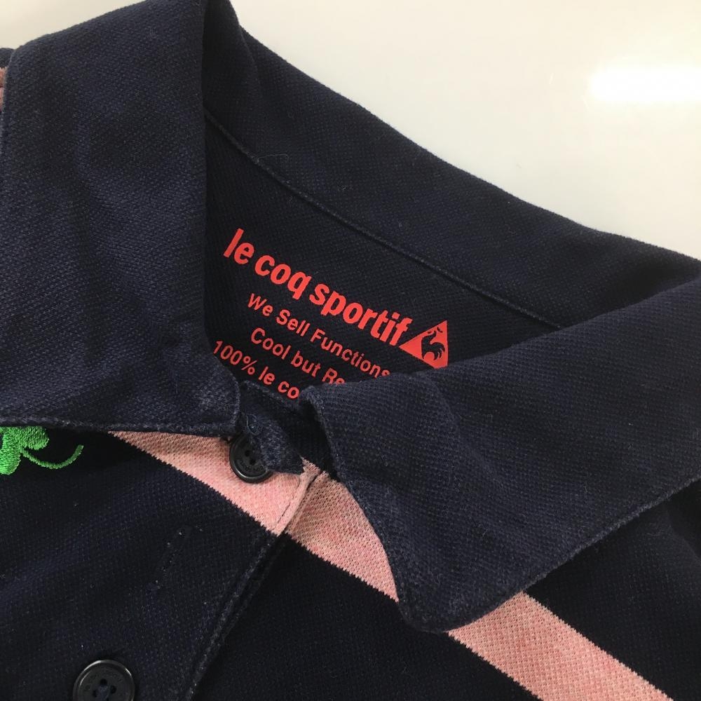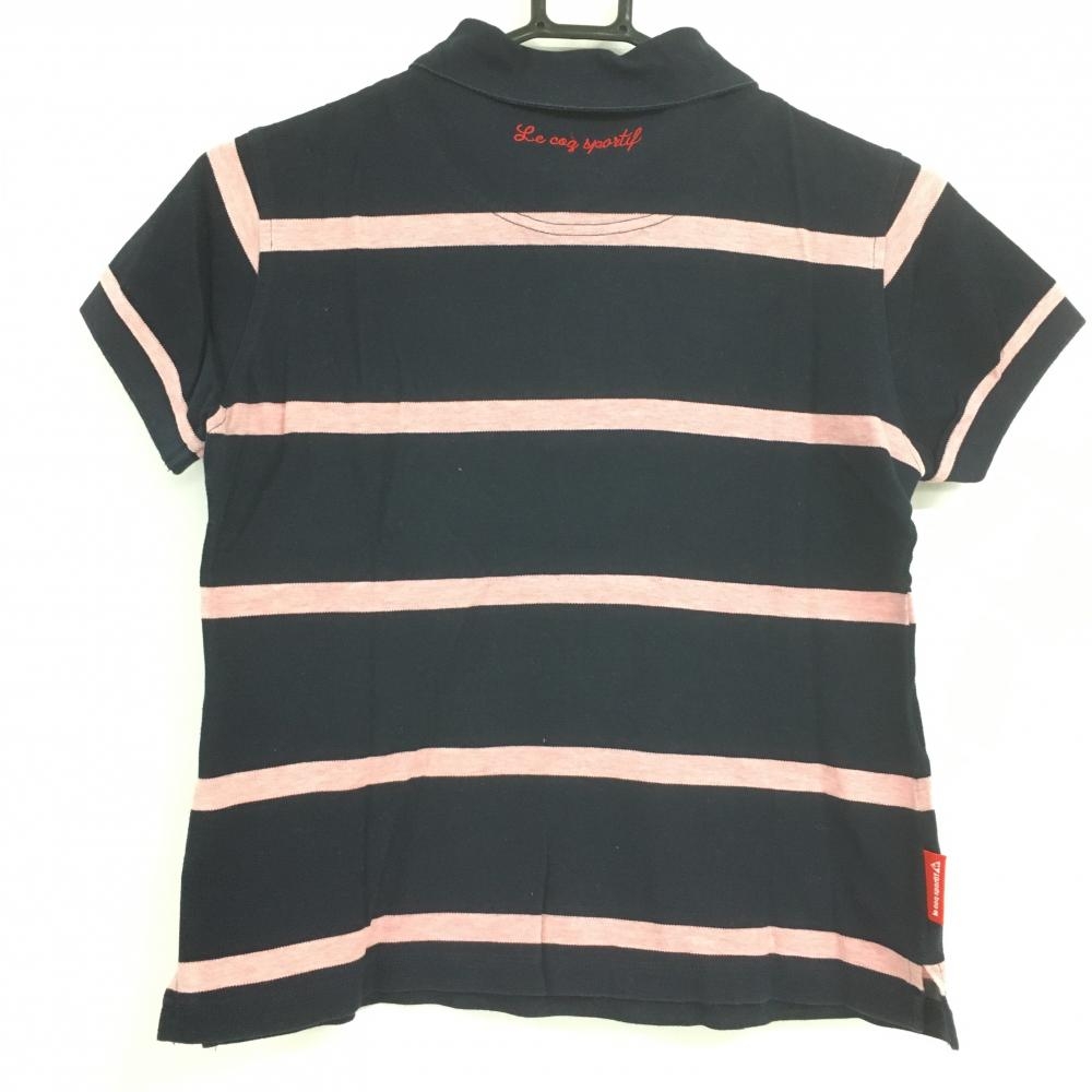 ルコック 半袖ポロシャツ ネイビー×ピンク ボーダー 胸刺しゅう レディース M ゴルフウェア le coq sportif
