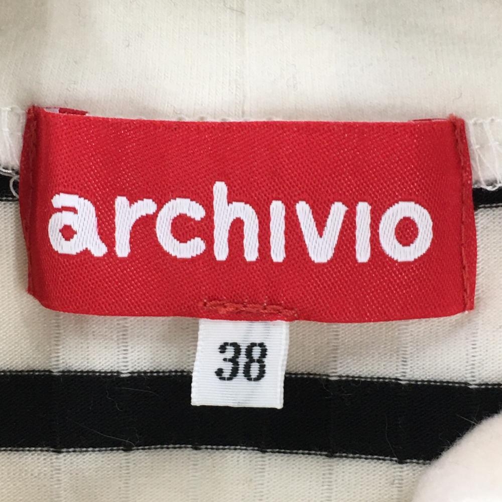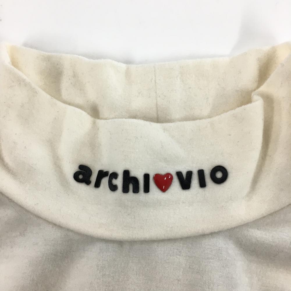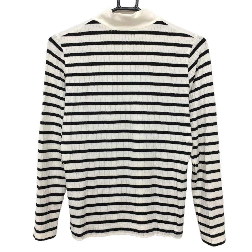 【超美品】アルチビオ 長袖ハイネックシャツ 白×黒 一部ボーダー 表微起毛 レディース 38(M) ゴルフウェア archivio