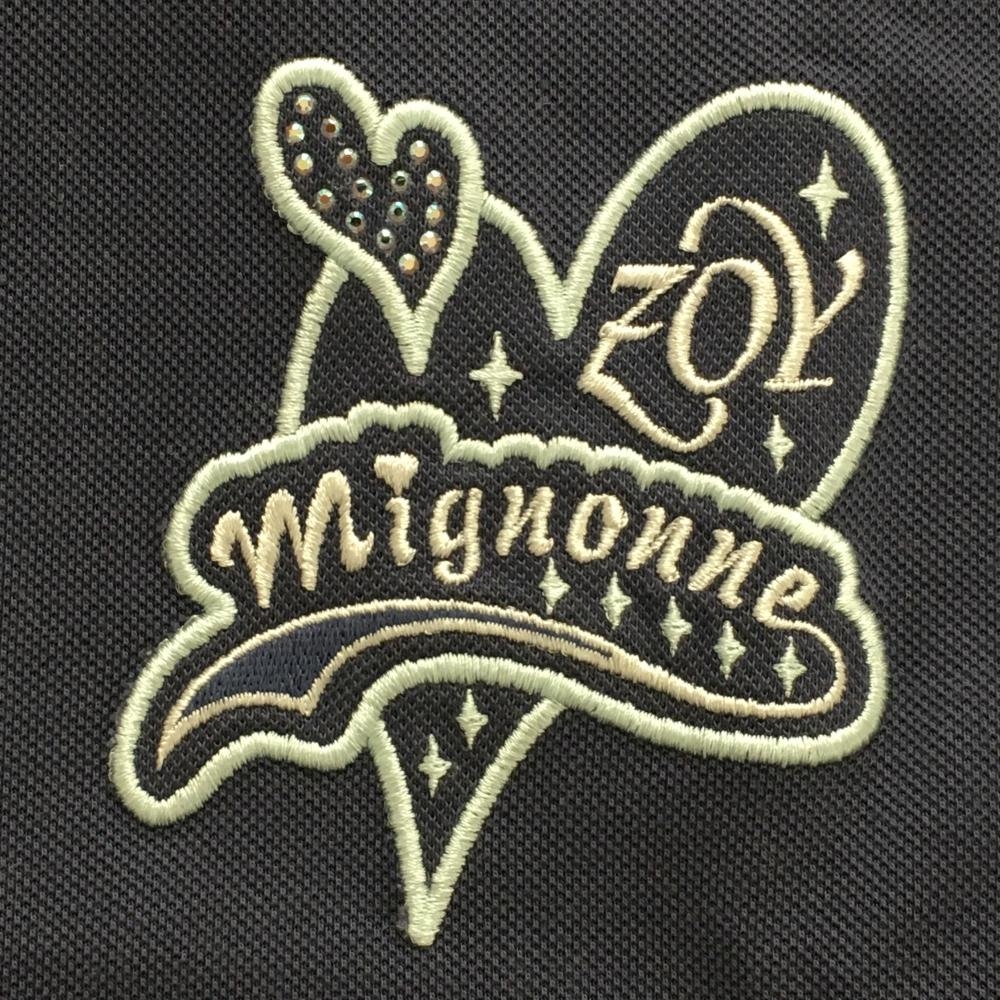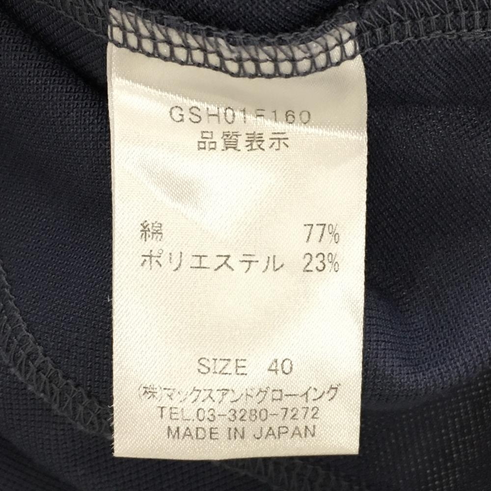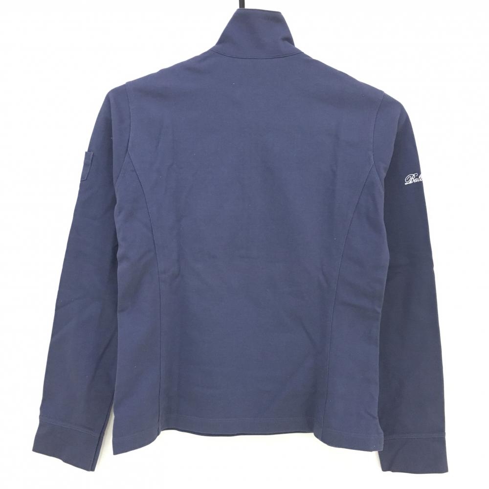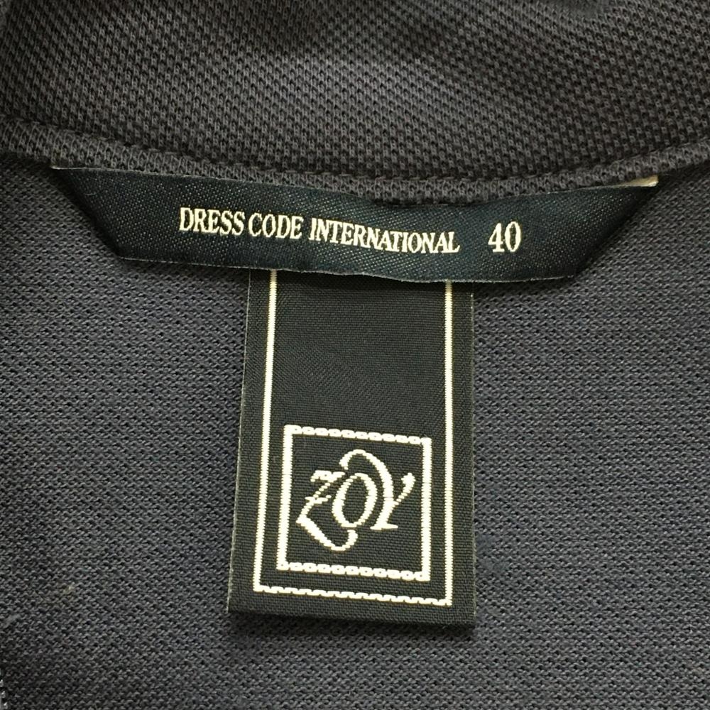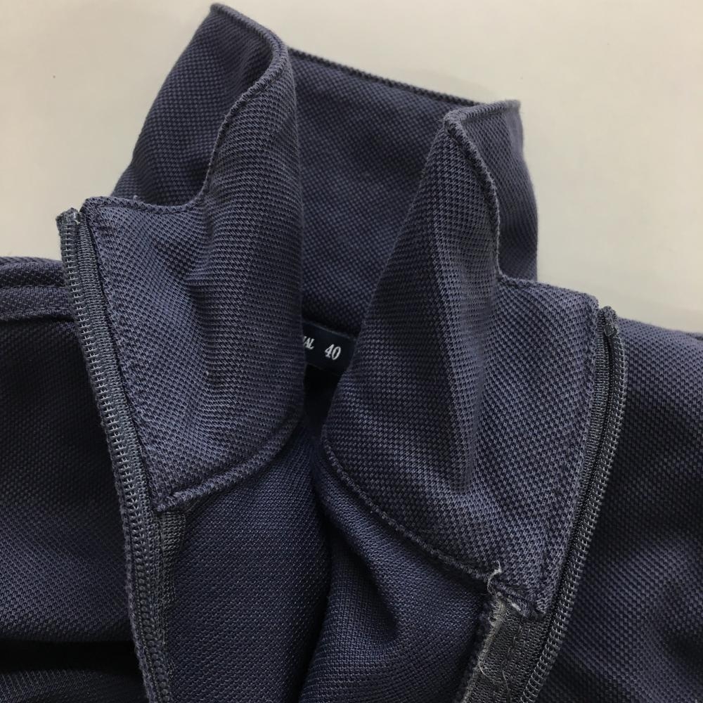 【美品】ゾーイ 長袖ハイネックシャツ ネイビー ロゴ刺しゅう ラインストーン レディース 40(L) ゴルフウェア ZOY
