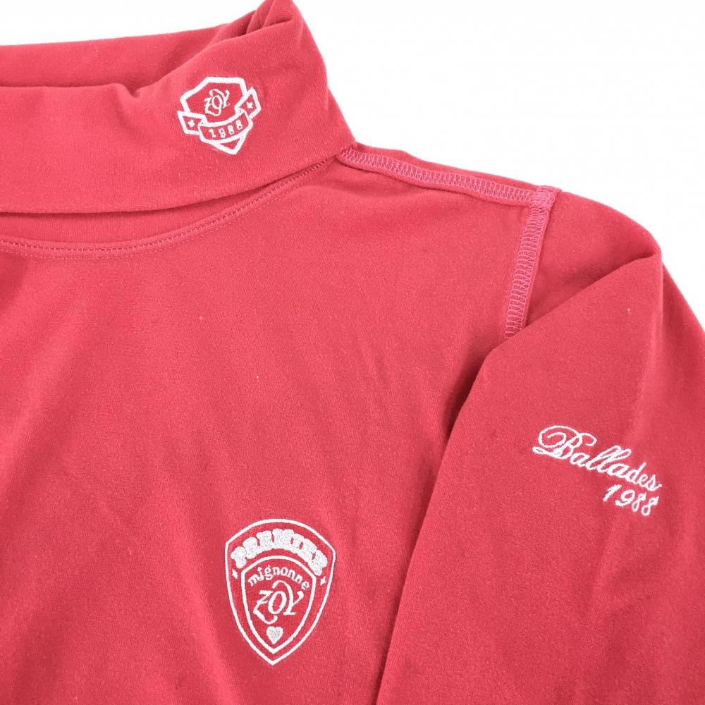 【美品】ゾーイ 長袖タートルネックシャツ ピンク ロゴ刺しゅう レディース 38(M) ゴルフウェア ZOY