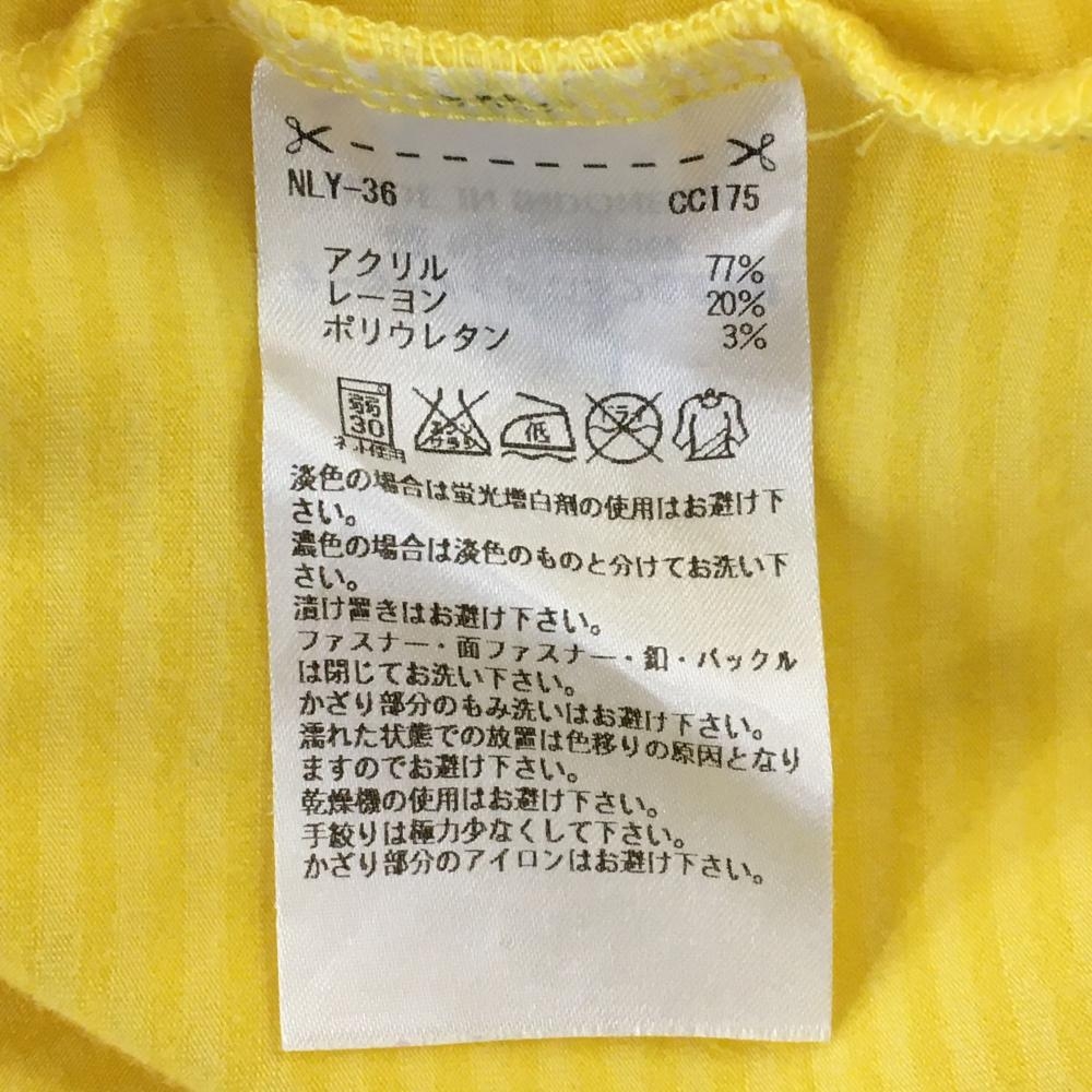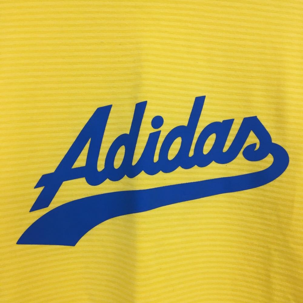 【超美品】アディダス 長袖ハイネックシャツ イエロー ボーダー アクリル混 ロゴプリント レディース L/G ゴルフウェア adidas