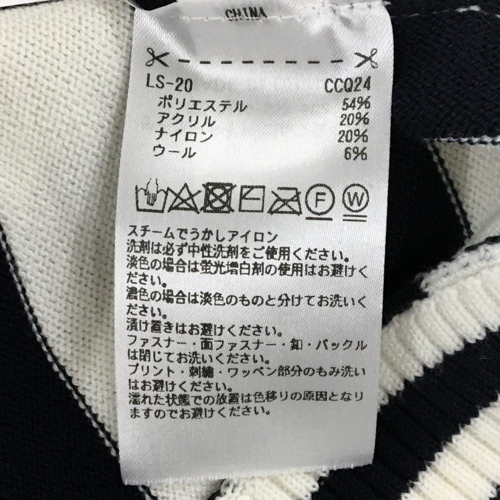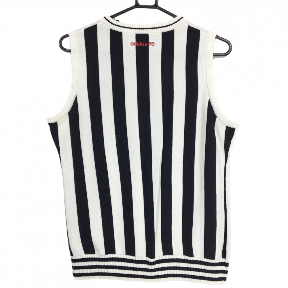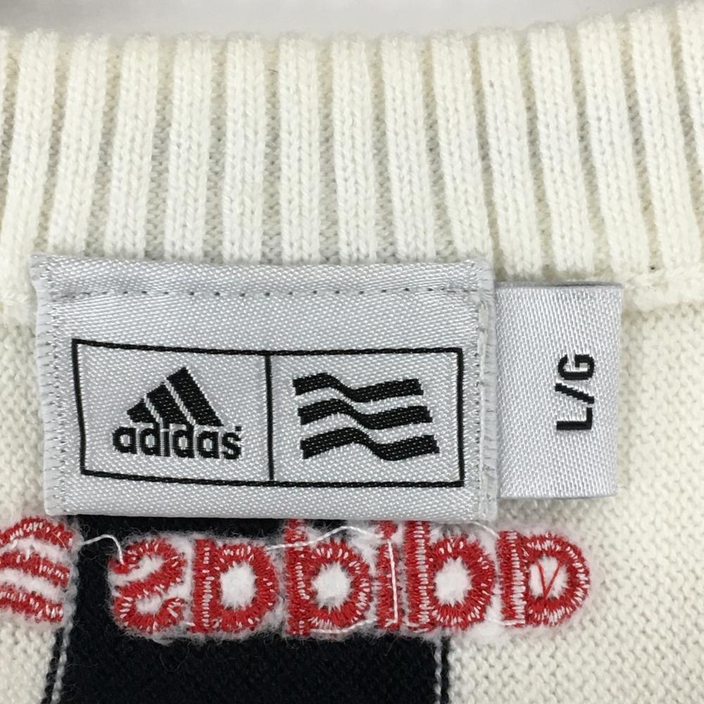 【超美品】アディダス ニットベスト 白×ダークネイビー 後ろストライプ 一部ケーブル編み ウール混 レディース L/G ゴルフウェア adidas