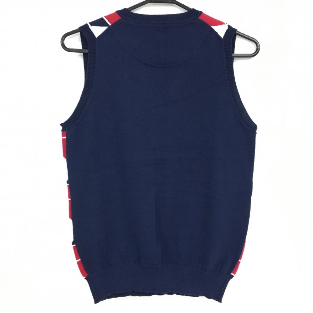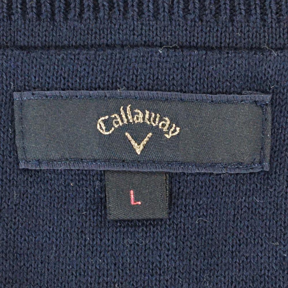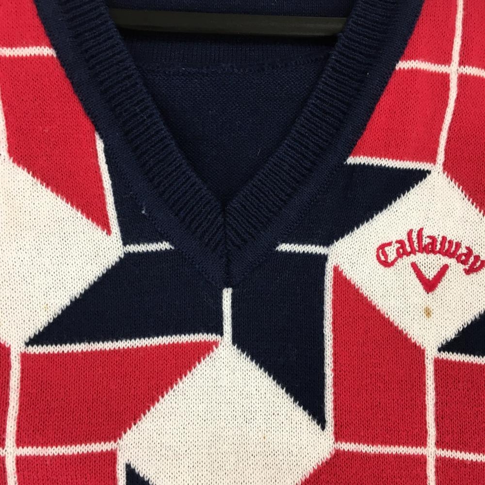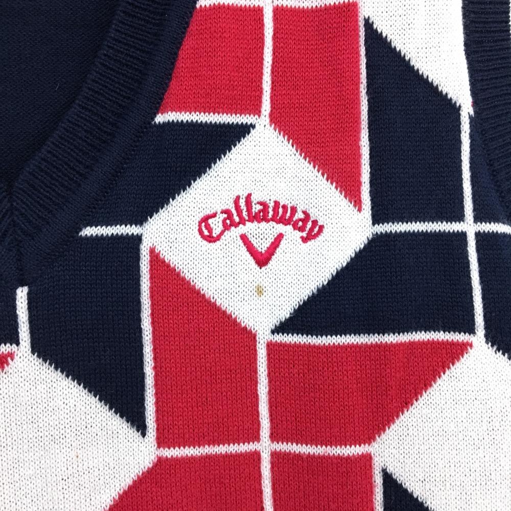 キャロウェイ ニットベスト ネイビー×ピンク 前面手裏剣柄 コットン混 Vネック レディース L ゴルフウェア Callaway
