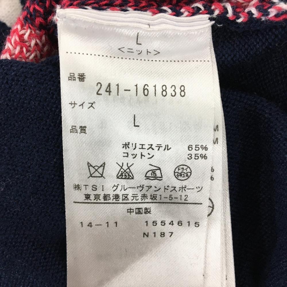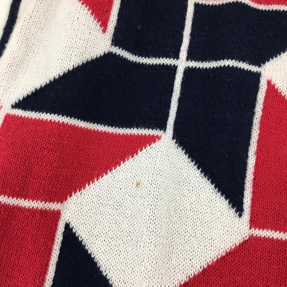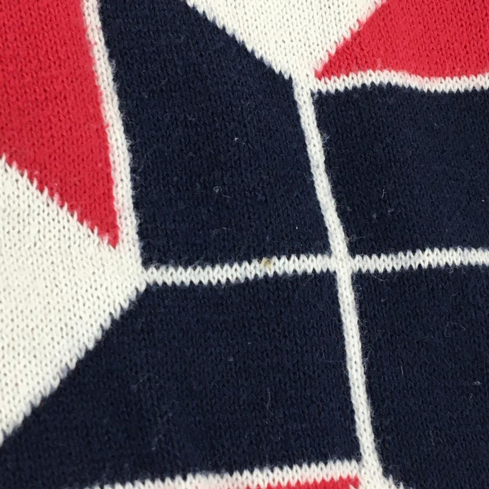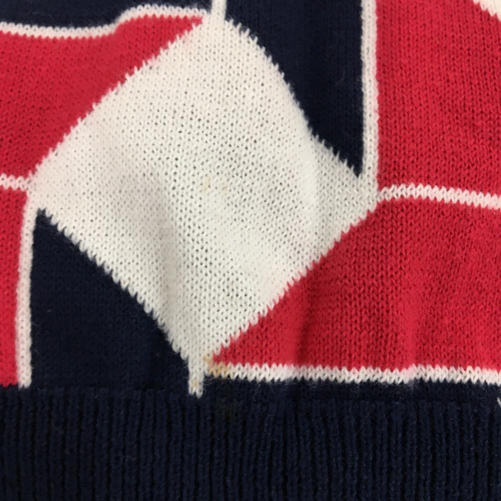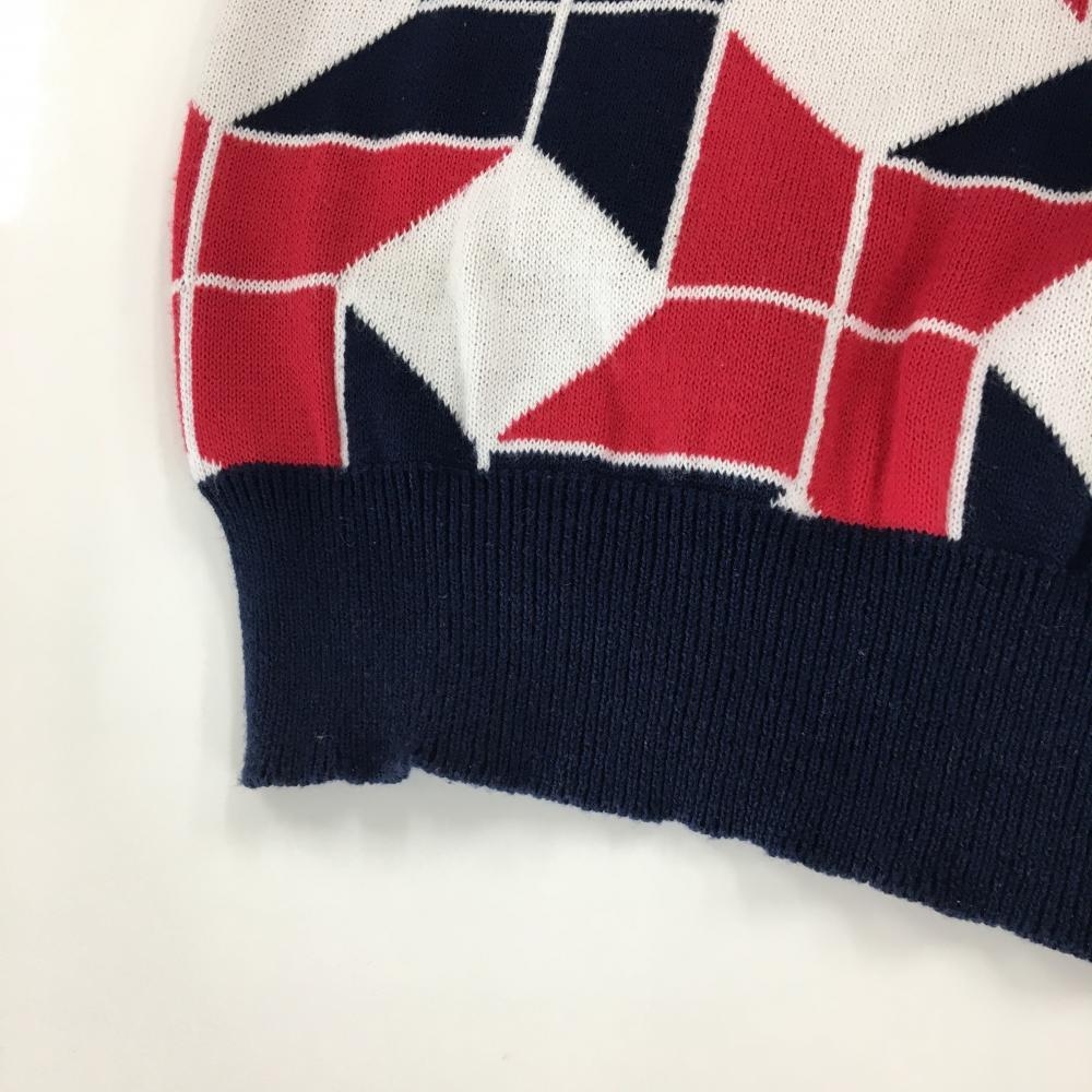 キャロウェイ ニットベスト ネイビー×ピンク 前面手裏剣柄 コットン混 Vネック レディース L ゴルフウェア Callaway