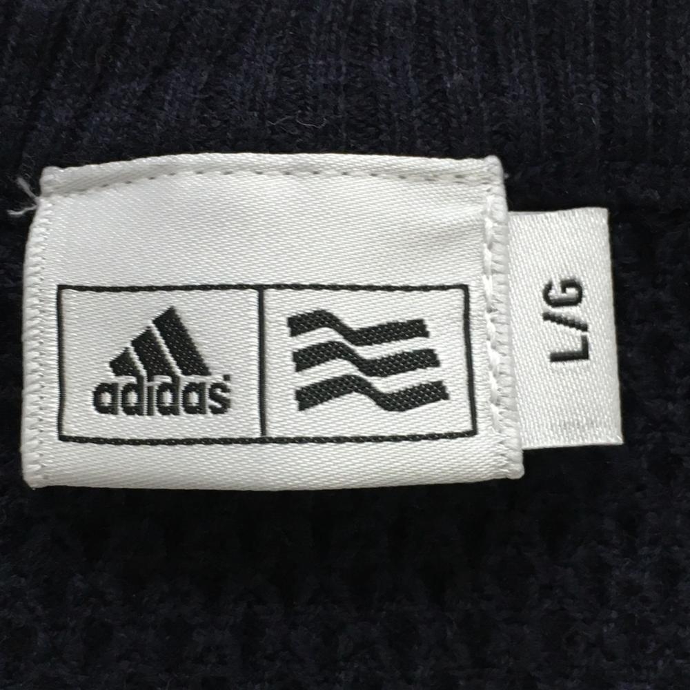 【超美品】アディダス ニットベスト グリーン×ネイビー ウール混 Vネック 勲章ワッペン レディース L/G ゴルフウェア adidas