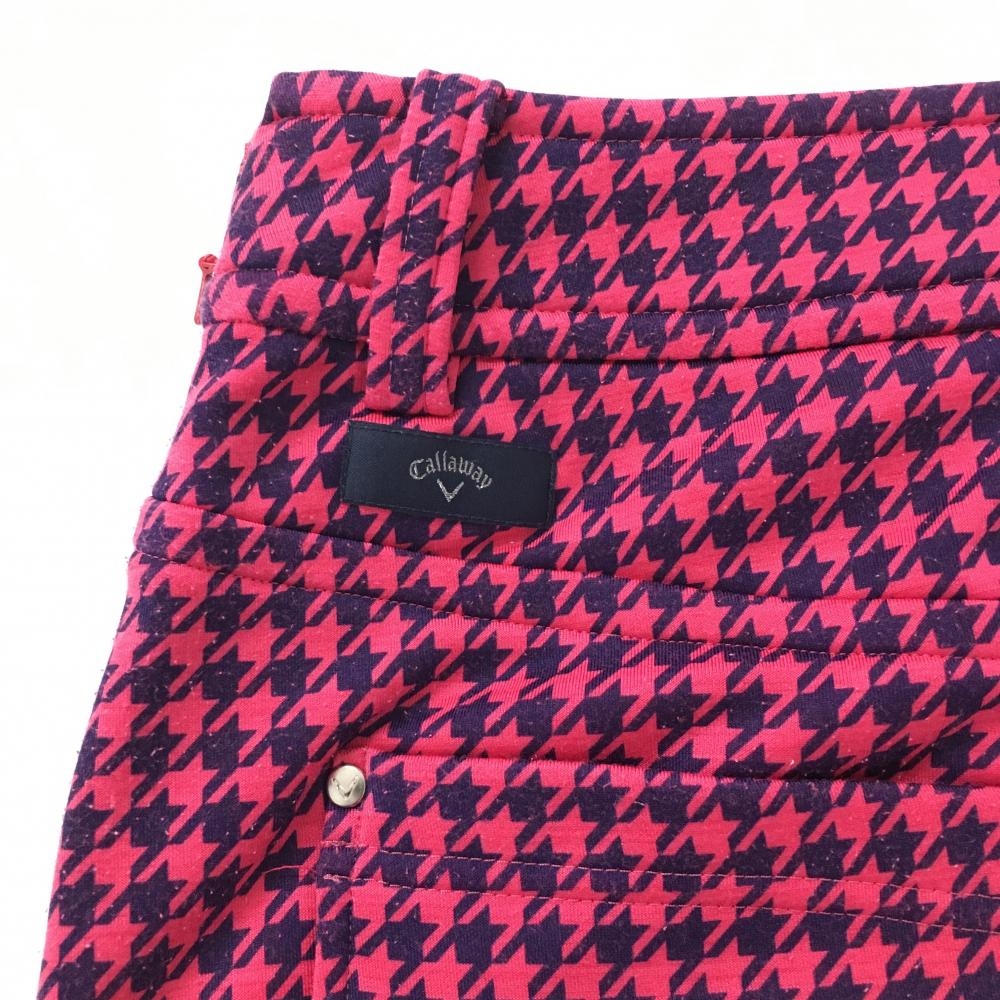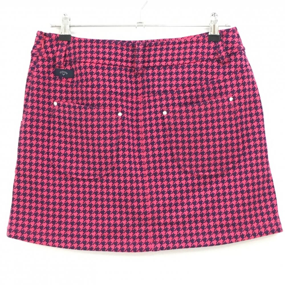 キャロウェイ スカート ピンク×ネイビー 千鳥格子 裏起毛 レディース L ゴルフウェア Callaway
