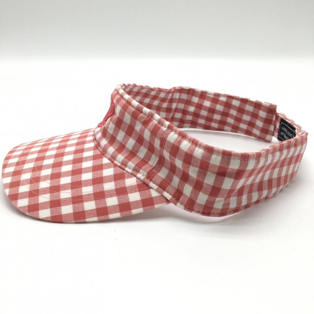 ゾーイ サンバイザー レッド×白 チェック柄 立体ロゴ刺しゅう ゴルフウェア ZOY