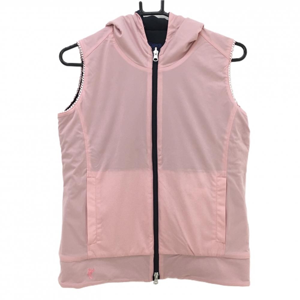 【超美品】アシュワース リバーシブルアウターベスト ダークネイビー フード付 裏面レッド レディース L ゴルフウェア ASHWORTH
