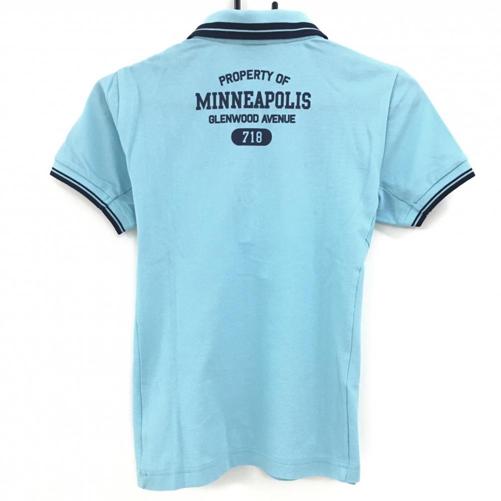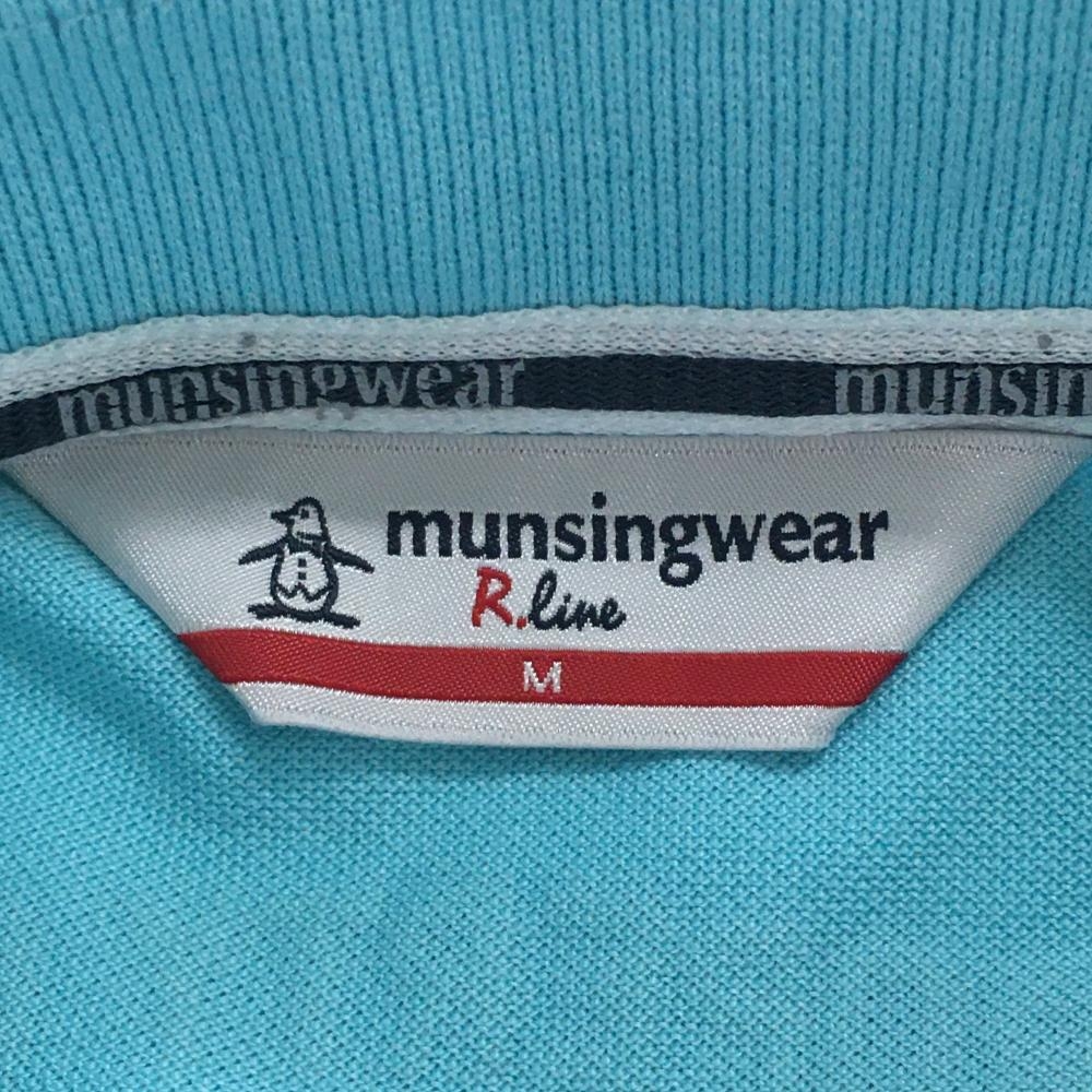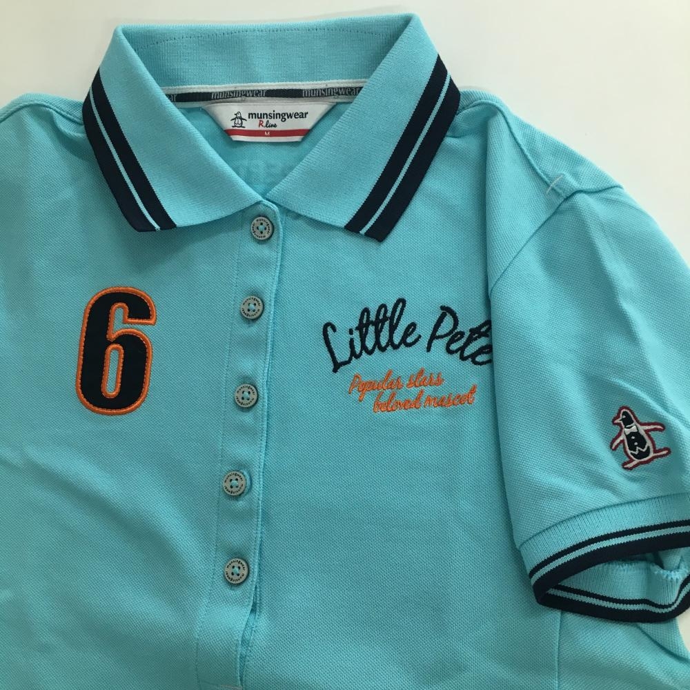 【超美品】マンシングウェア 半袖ポロシャツ ライトブルー×ネイビー 襟袖口ライン レディース M ゴルフウェア Munsingwear