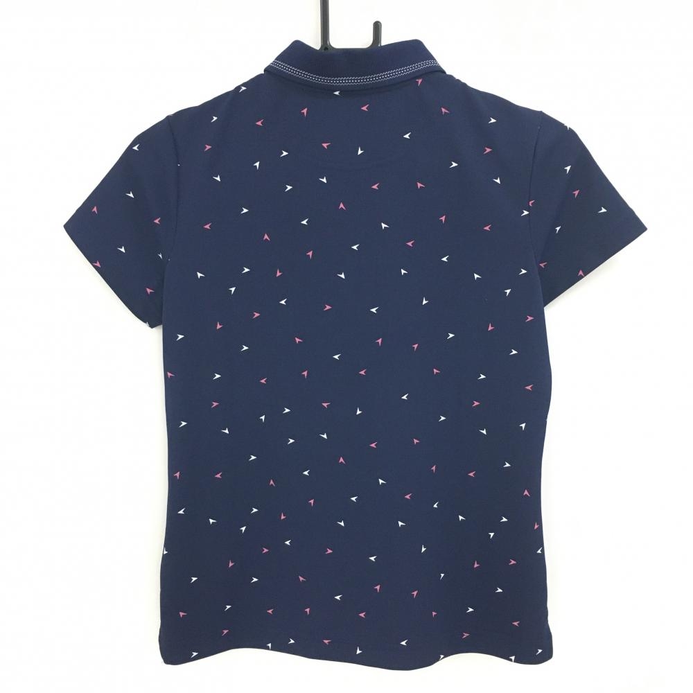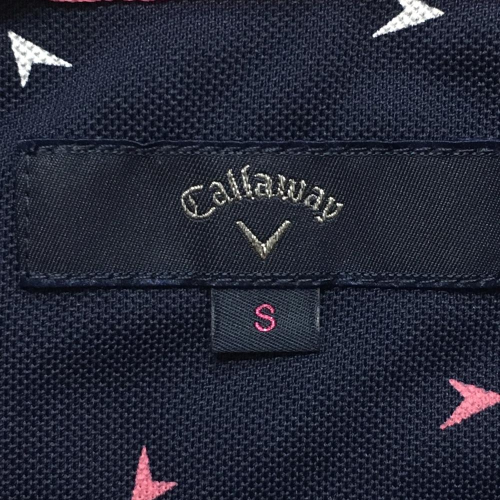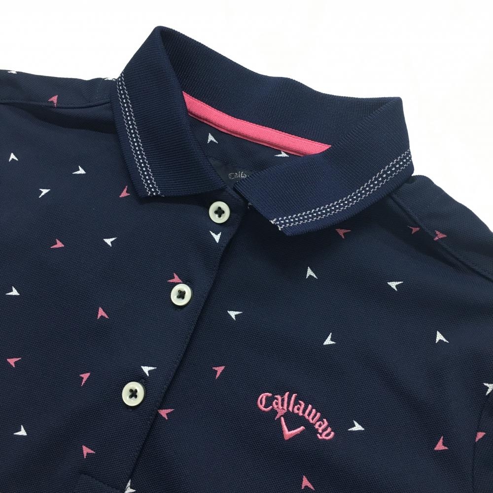 【超美品】キャロウェイ 半袖ポロシャツ ネイビー×ピンク ロゴ総柄 レディース S ゴルフウェア Callaway