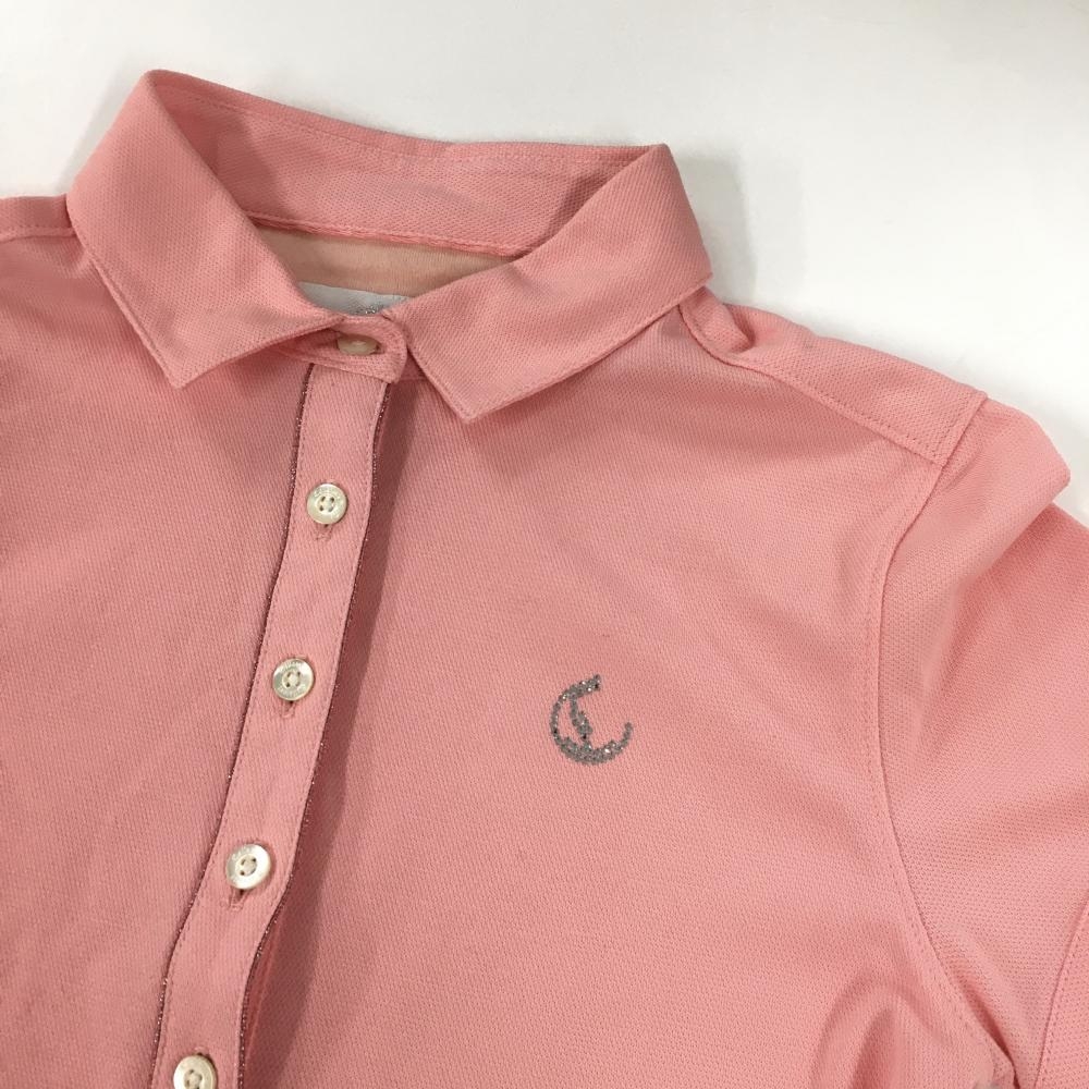 【美品】キャロウェイ 半袖ポロシャツ ピンク ロゴラインストーン レディース S ゴルフウェア Callaway