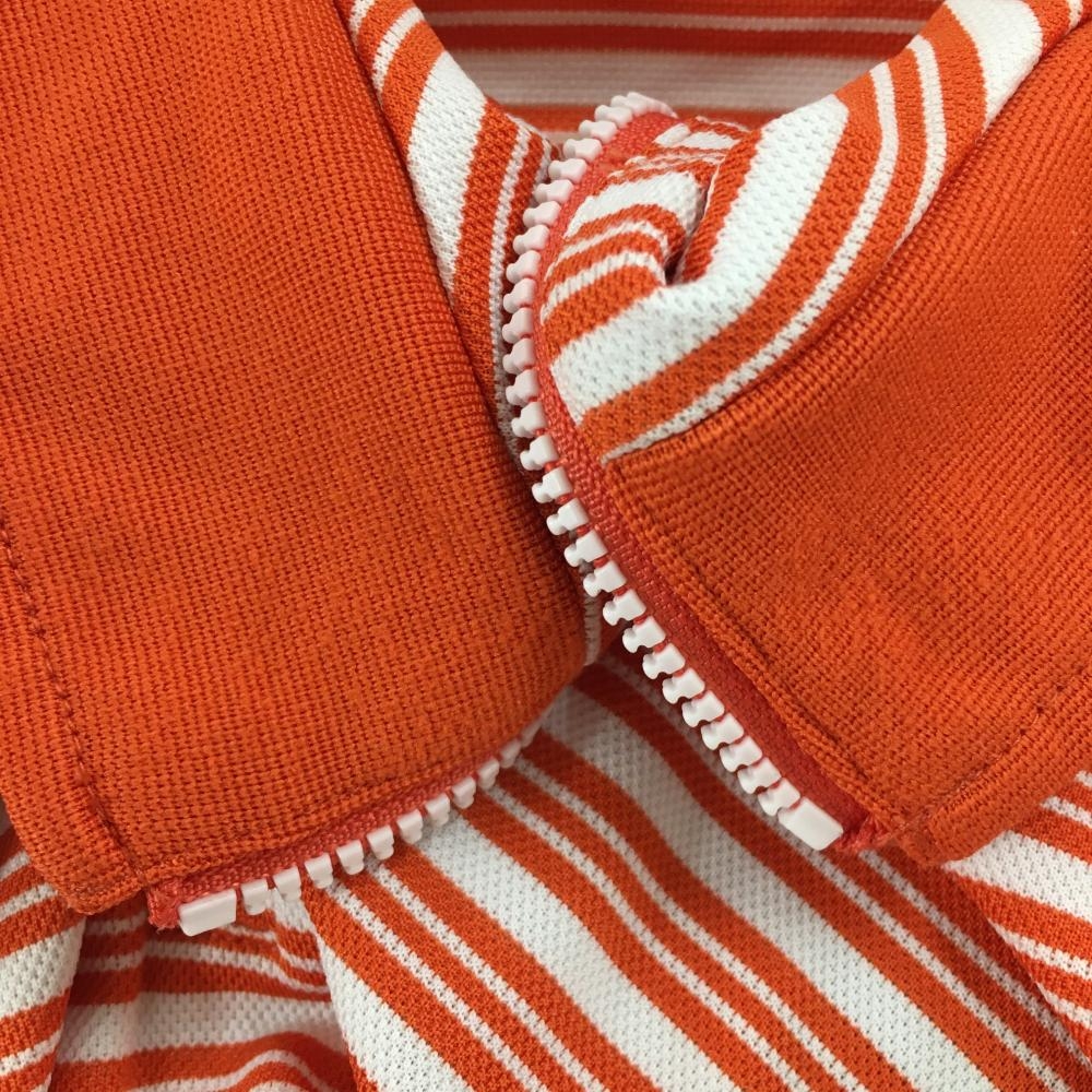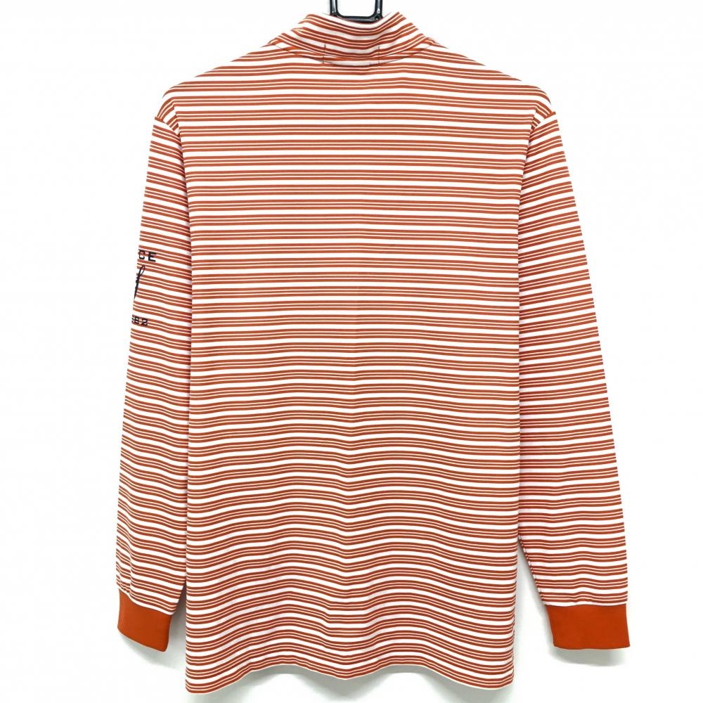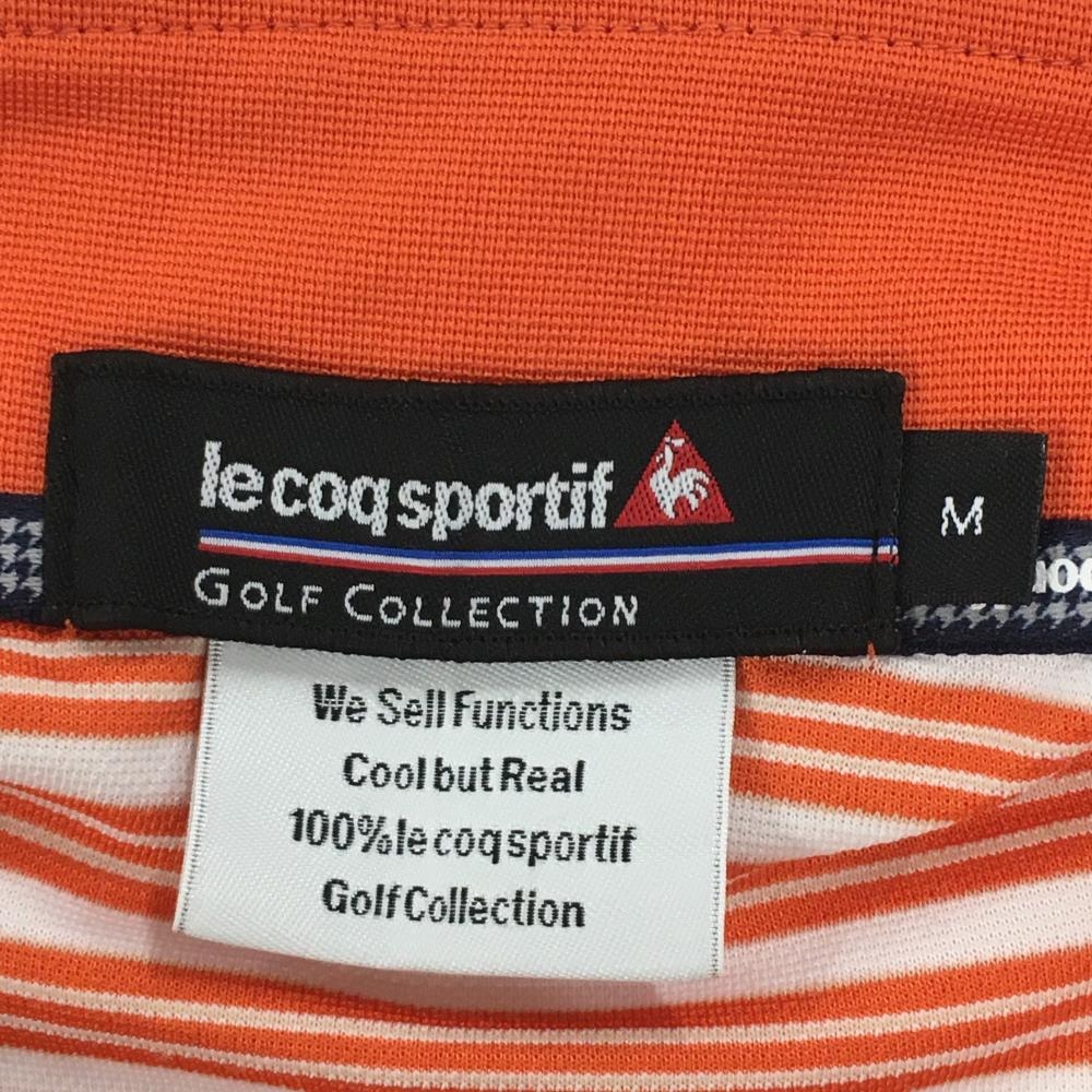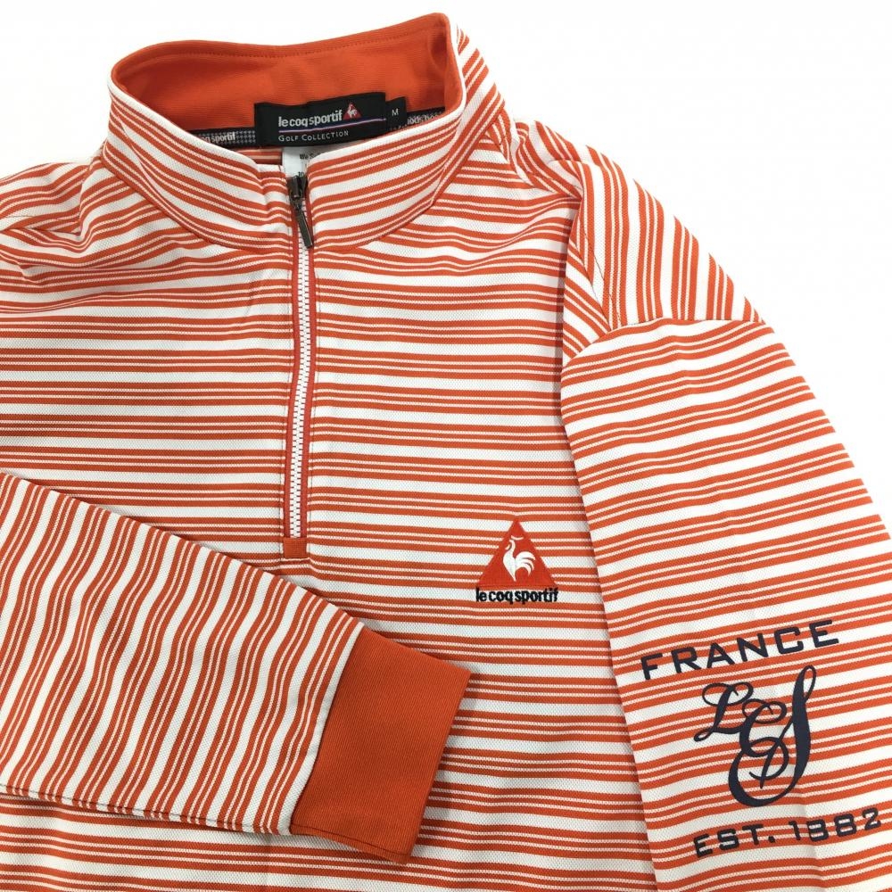 【美品】ルコックゴルフ 長袖ハイネックシャツ 白×オレンジ ボーダー ハーフジップ メンズ M ゴルフウェア le coq sportif