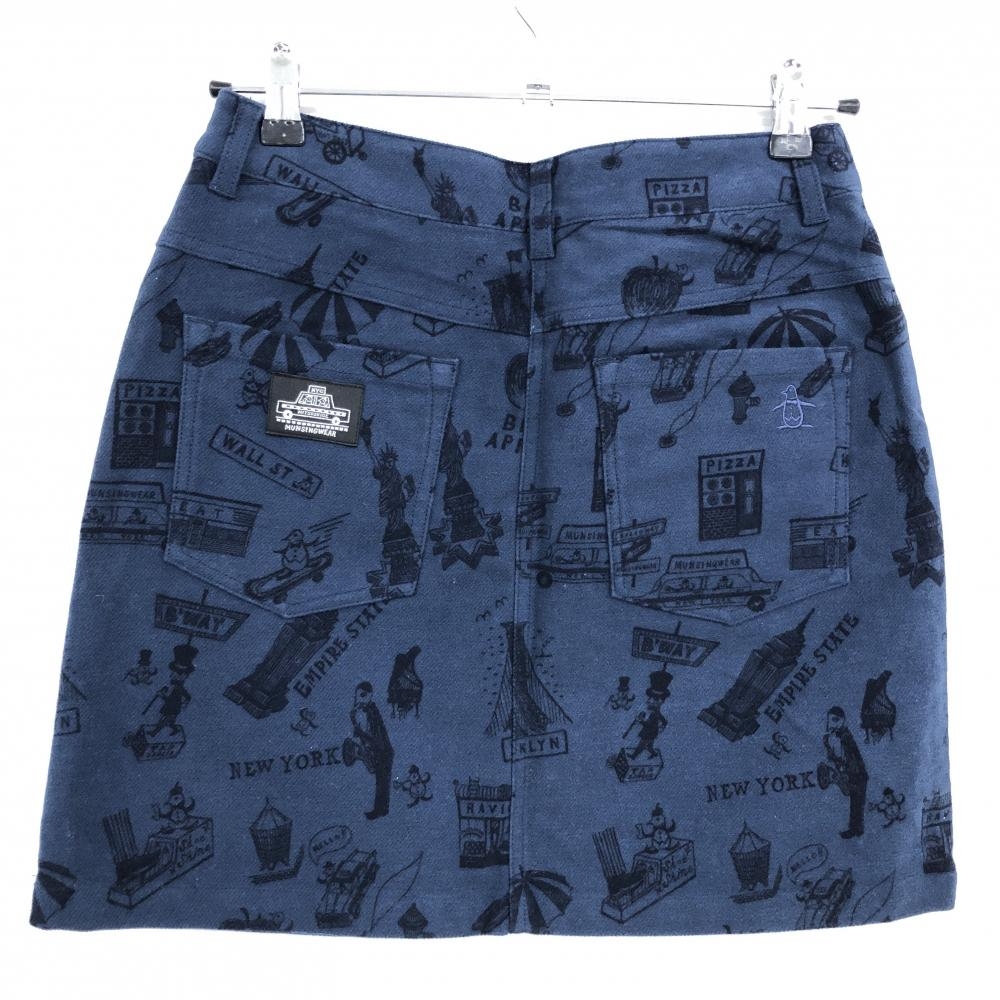 【新品】マンシングウェア スカート ネイビー×黒 総柄 表微起毛 レディース 9 ゴルフウェア Munsingwear