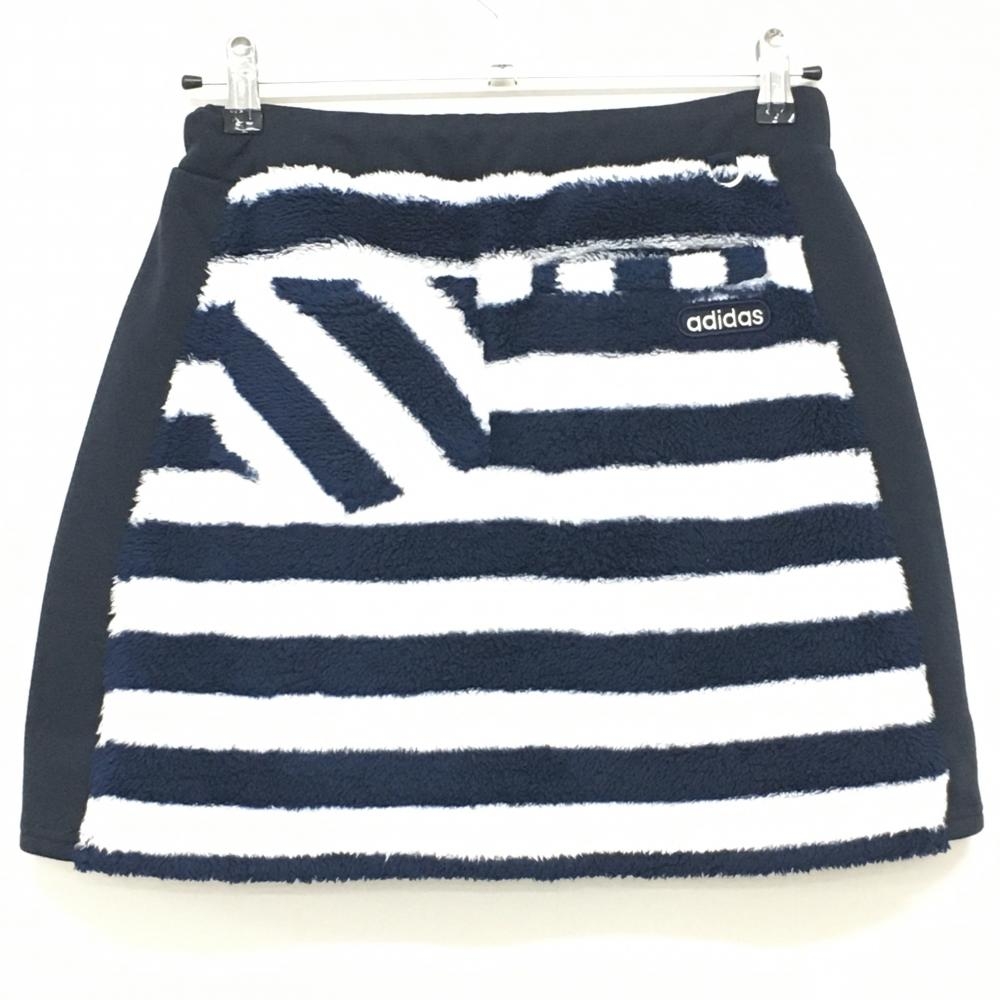 【美品】アディダス ボアスカート ネイビー×白 サイド異素材切替 ボアへたり レディース M/M ゴルフウェア adidas