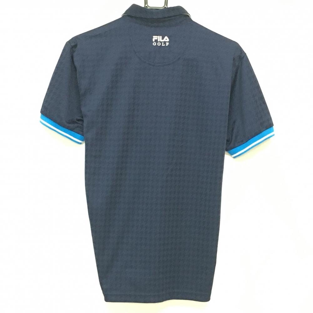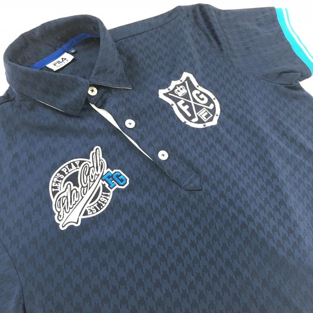 フィラゴルフ 半袖ポロシャツ ネイビー千鳥格子地模様 刺しゅう メンズ M ゴルフウェア FILA GOLF