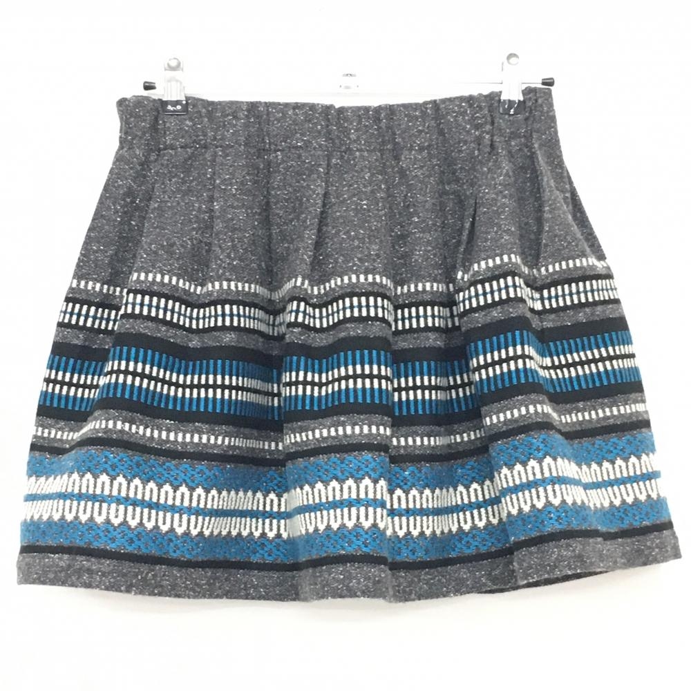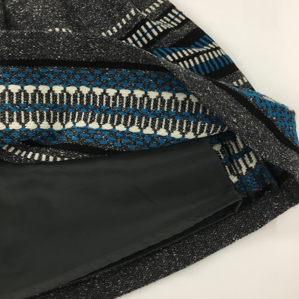 【超美品】パーリーゲイツ ニットスカート 杢グレー×ライトブルー 総柄 ウール混 裏地付 レディース 1(M) ゴルフウェア PEARLY GATES