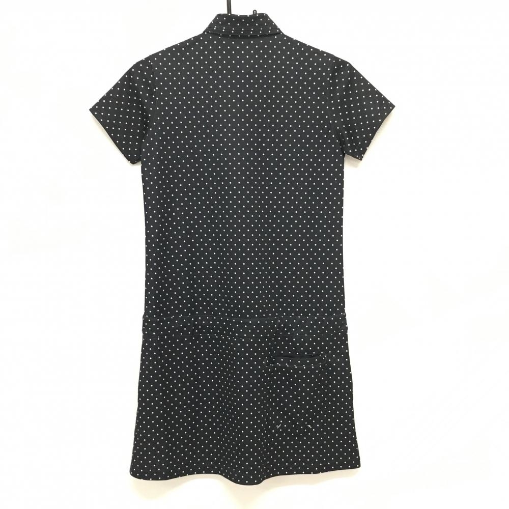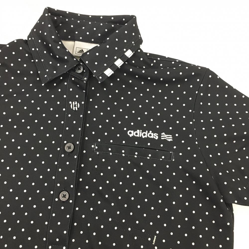 【超美品】アディダス 半袖ワンピース 黒×白 ドット 胸ポケット付 レディース S/P ゴルフウェア adidas