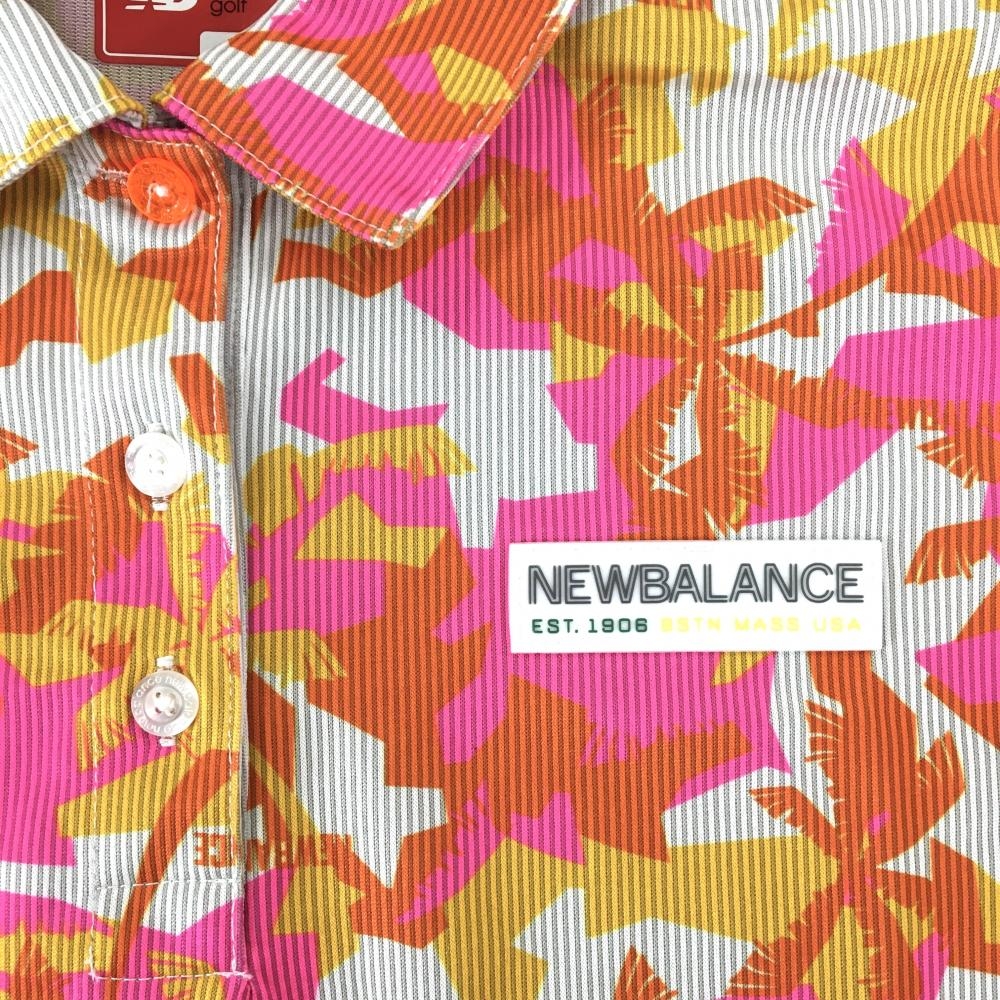 【超美品】ニューバランスゴルフ 半袖ポロシャツ ライトグレー×ピンク×レッド レディース S ゴルフウェア New Balance
