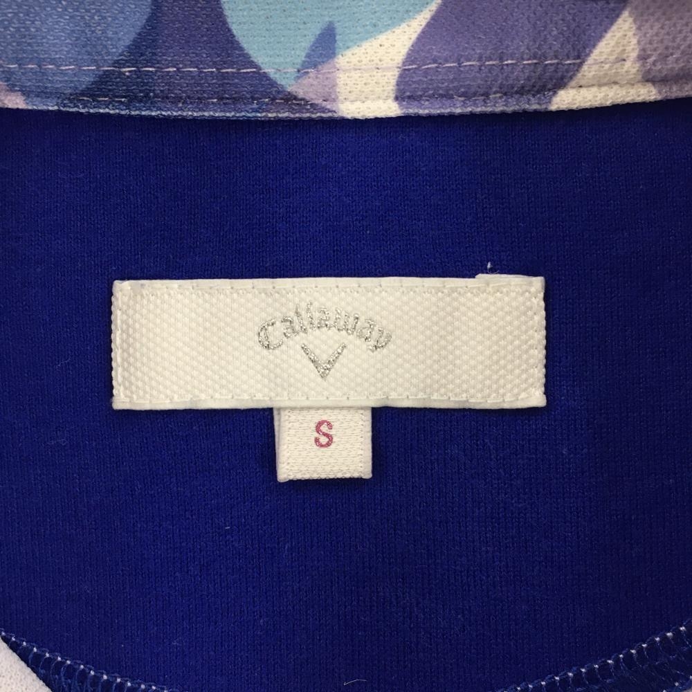 【超美品】キャロウェイ 半袖ポロシャツ 白×パープル 総柄 胸ポケット付 レディース S ゴルフウェア Callaway