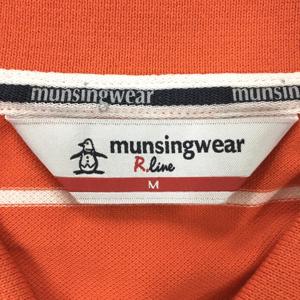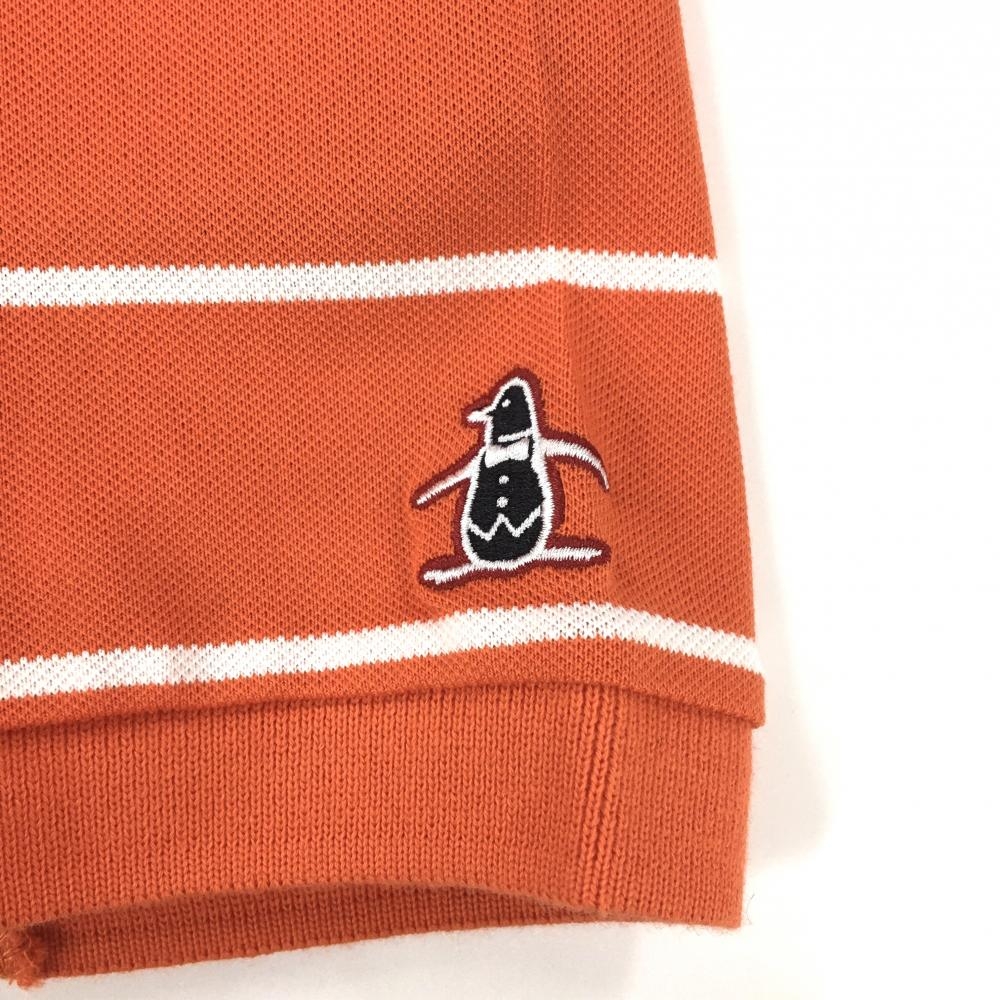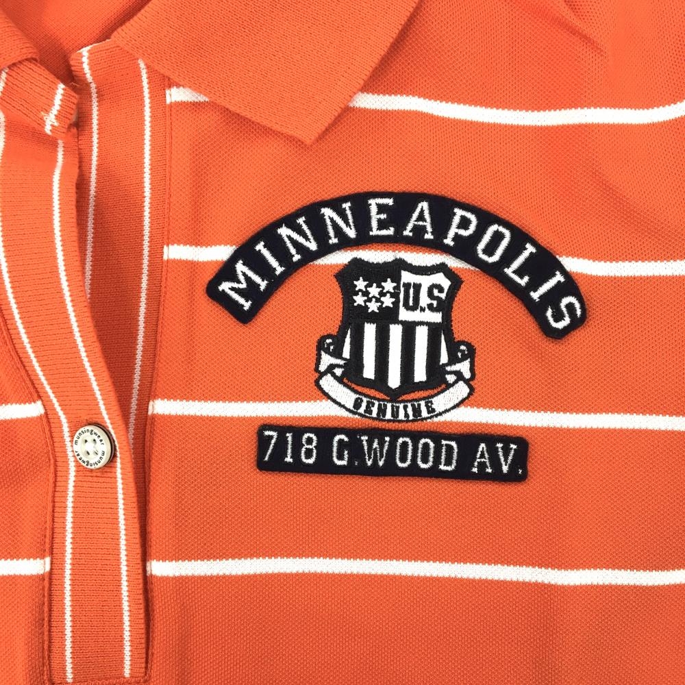 【超美品】マンシングウェア 半袖ポロシャツ オレンジ×白 ボーダー レディース M ゴルフウェア Munsingwear