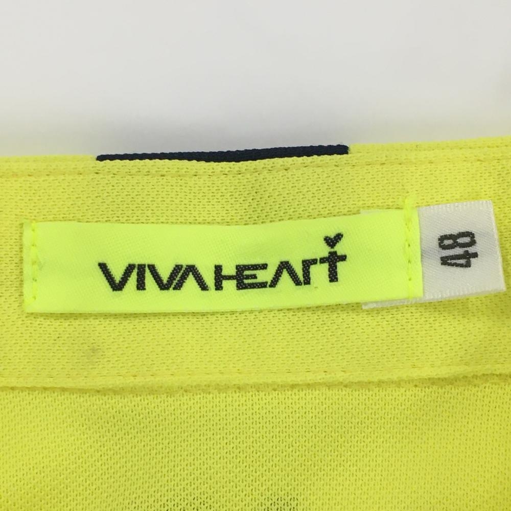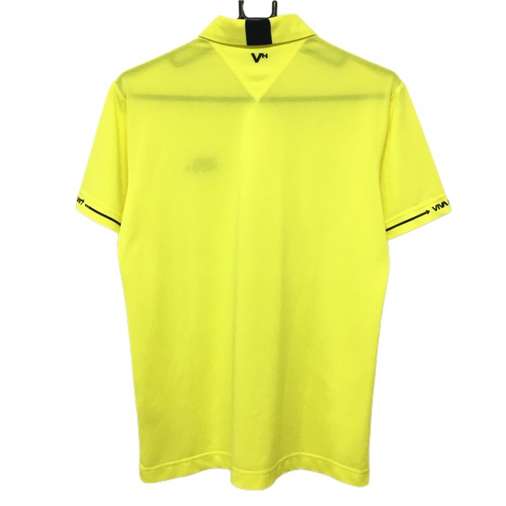 ビバハート 半袖ポロシャツ イエロー×黒 胸刺しゅう 袖口プリント 襟汚れ メンズ 48(M) ゴルフウェア VIVA HEART
