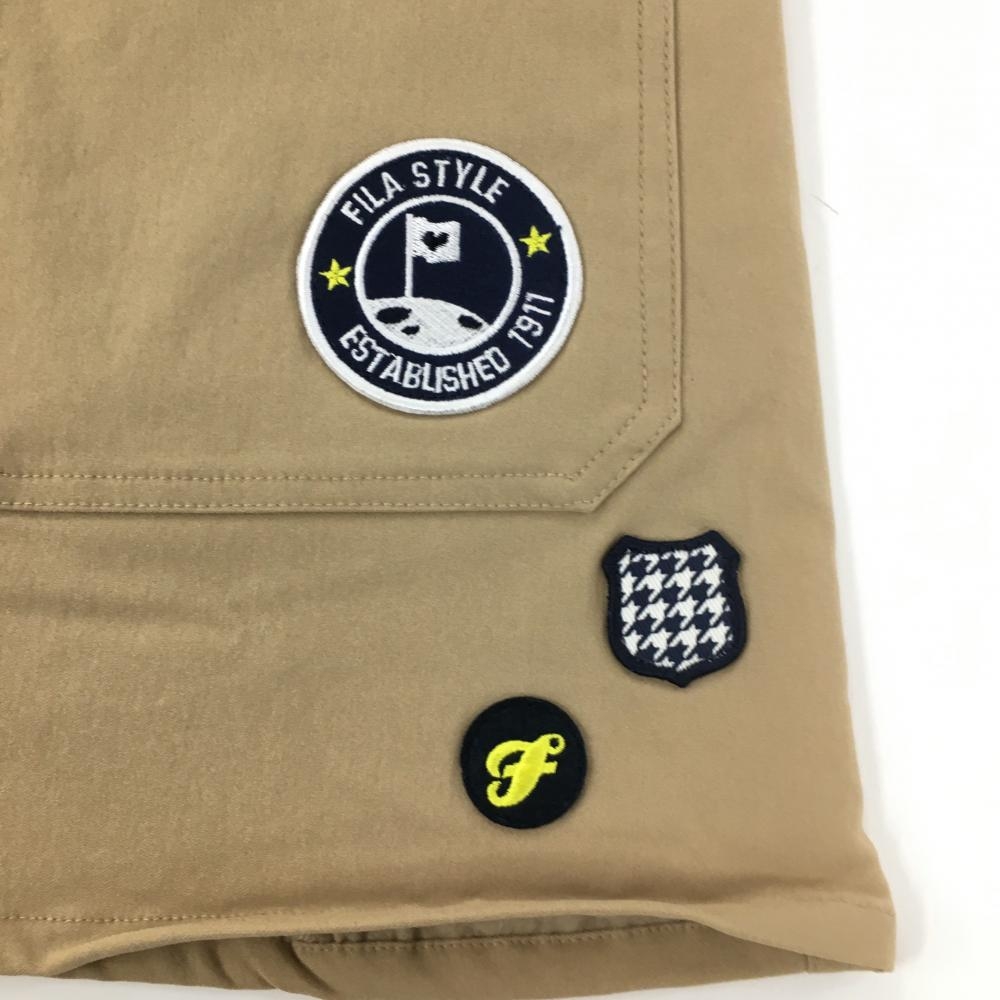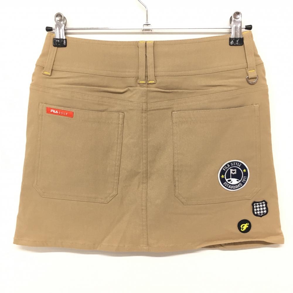 【超美品】フィラゴルフ スカート ベージュ 裏微起毛 後ろ複数ワッペン レディース S ゴルフウェア FILA GOLF