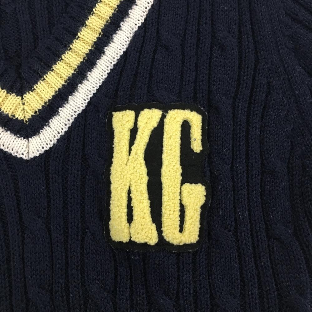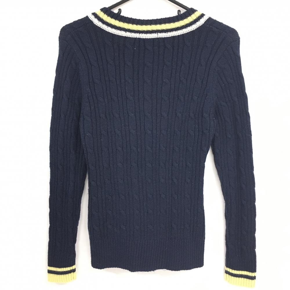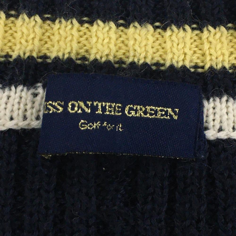 キスオンザグリーン セーター ネイビー×イエロー Vネック ワッペン ニット レディース 2(M) ゴルフウェア kiss on the green
