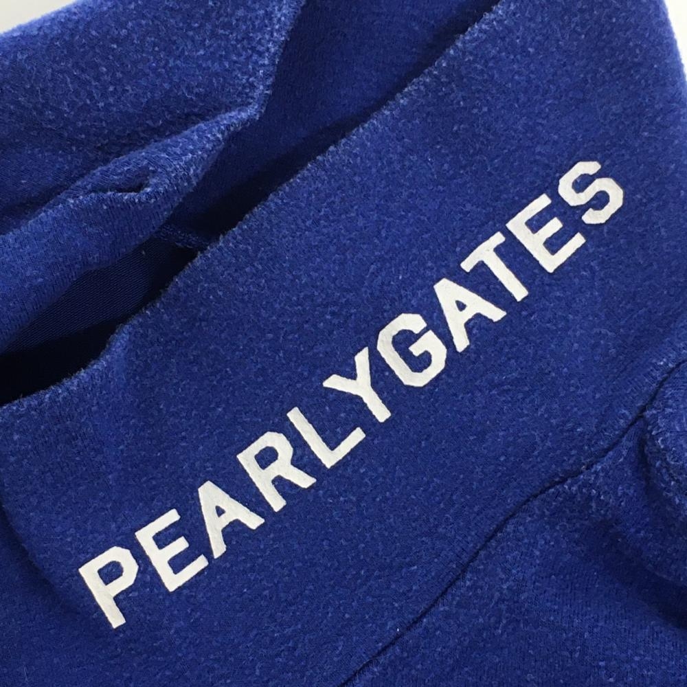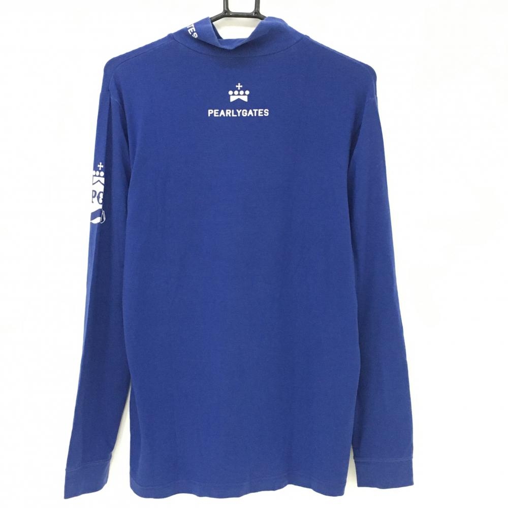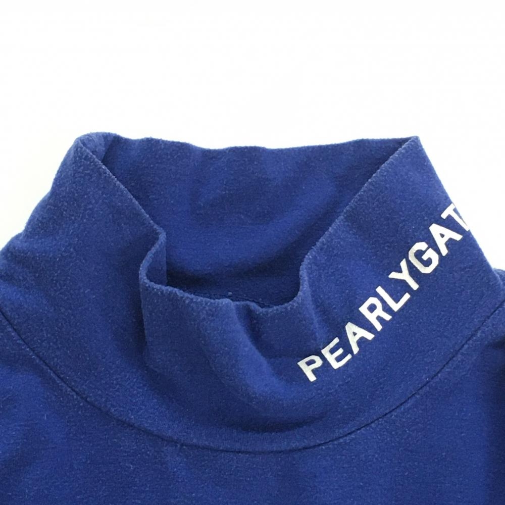 パーリーゲイツ 長袖ハイネックシャツ ブルー×白 表微起毛 アクリル混 ネックロゴ メンズ 6(XL) ゴルフウェア PEARLY GATES