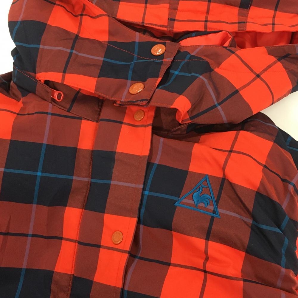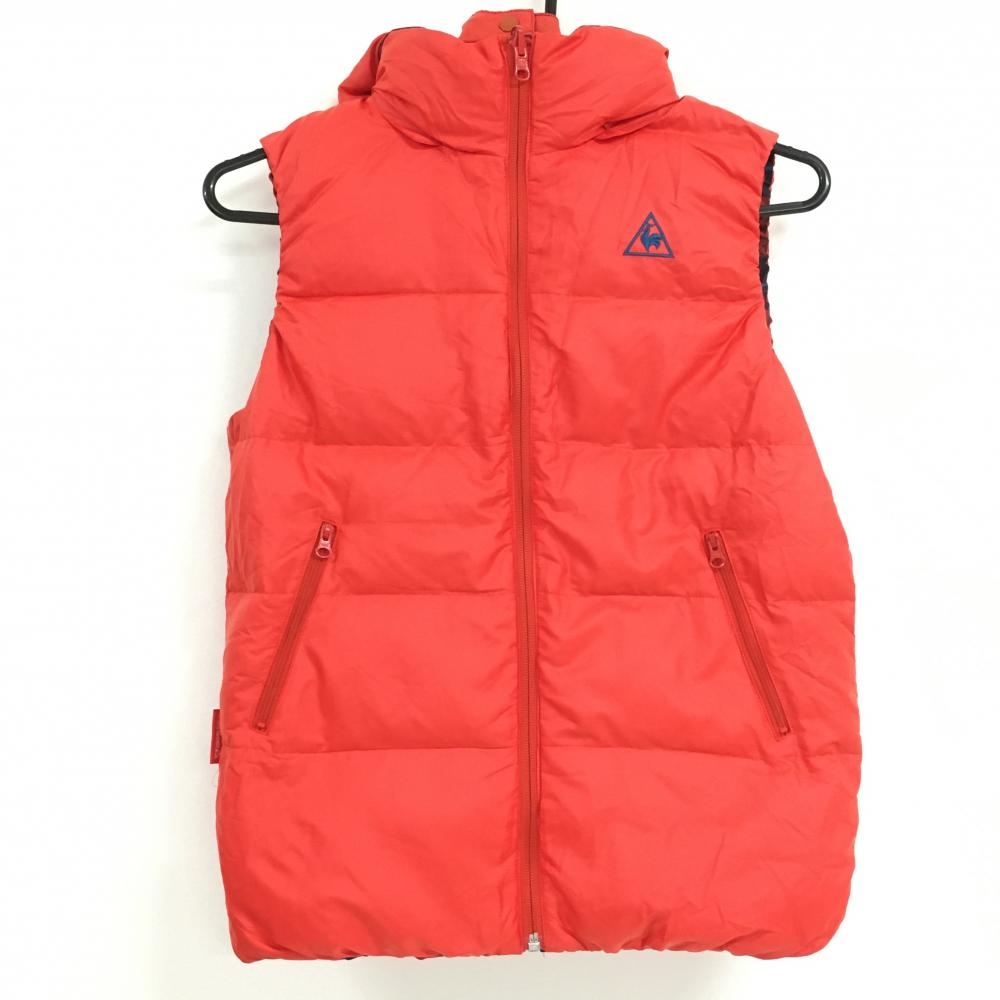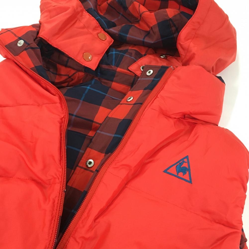 【超美品】ルコック リバーシブルダウンベスト レッド×ネイビー チェック 4WAY フード着脱可 レディース M ゴルフウェア le coq sportif