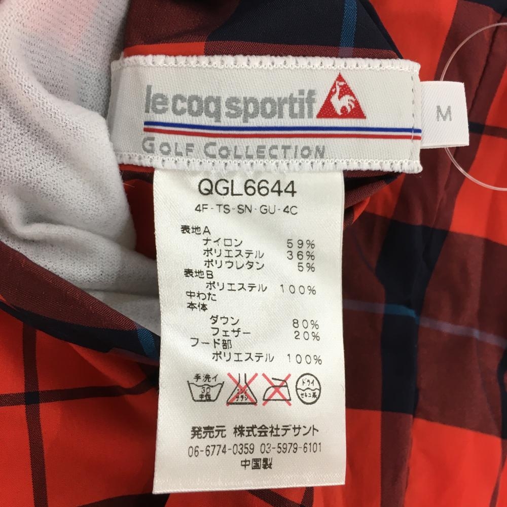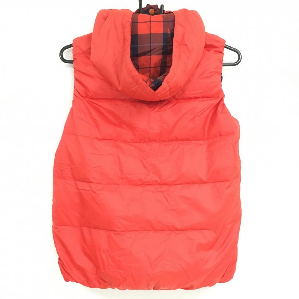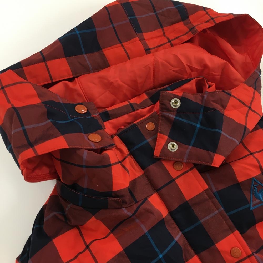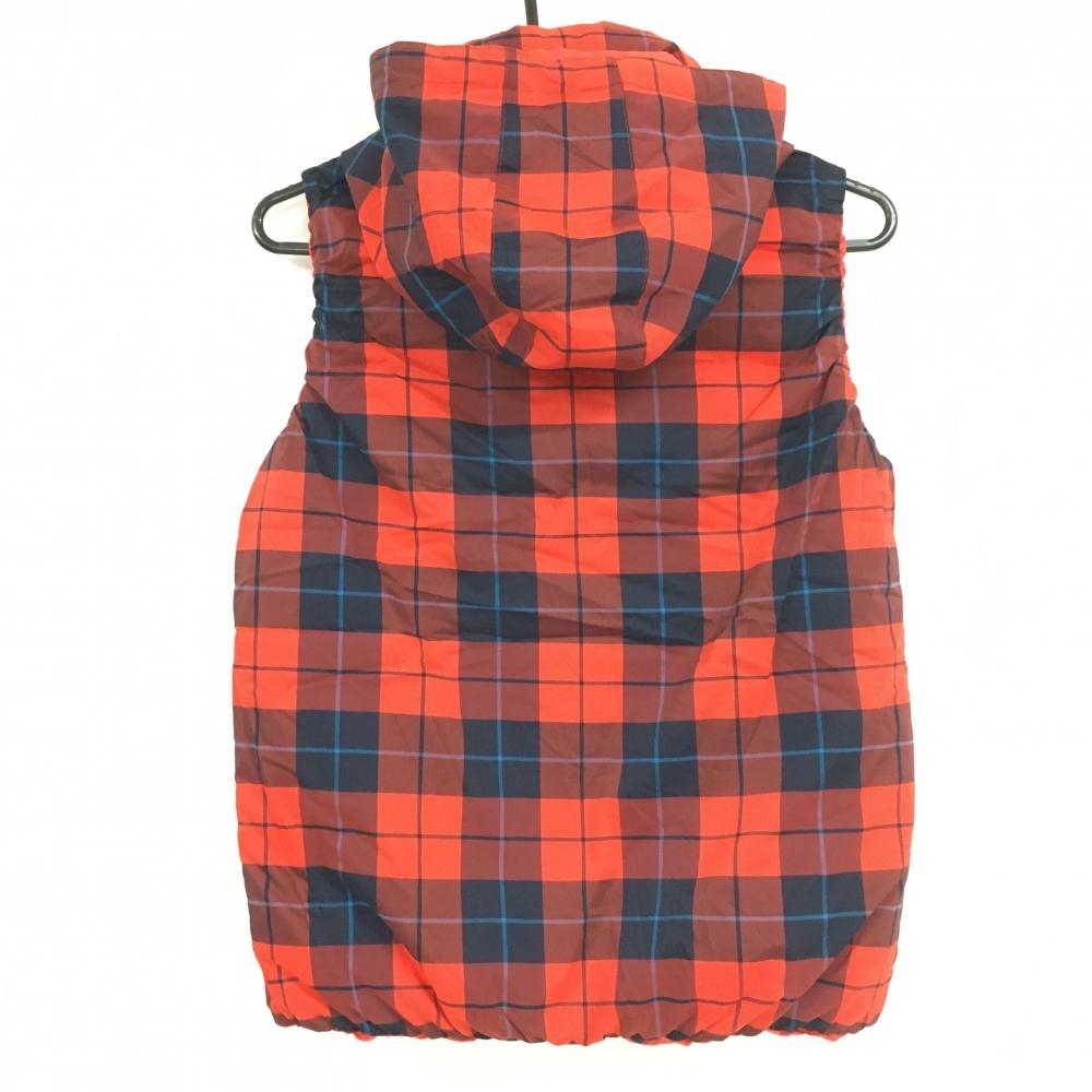 【超美品】ルコック リバーシブルダウンベスト レッド×ネイビー チェック 4WAY フード着脱可 レディース M ゴルフウェア le coq sportif