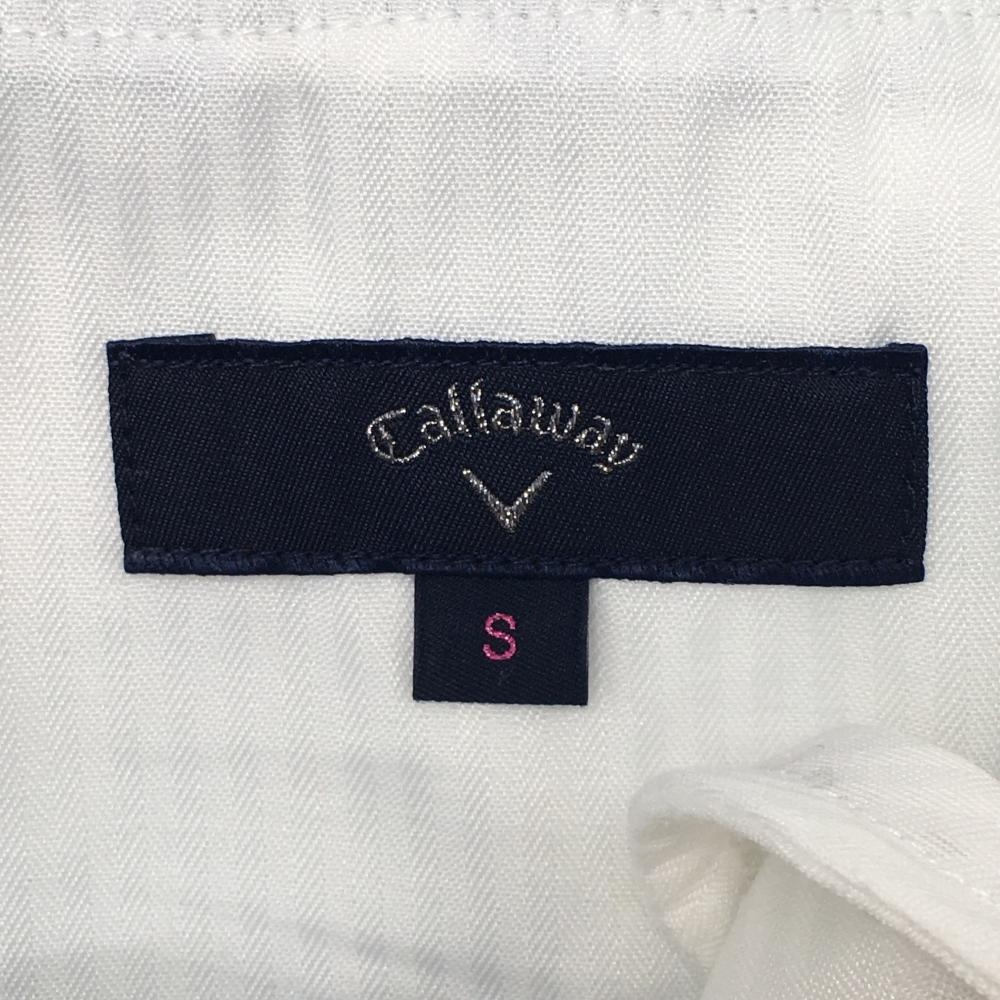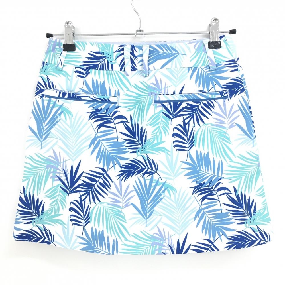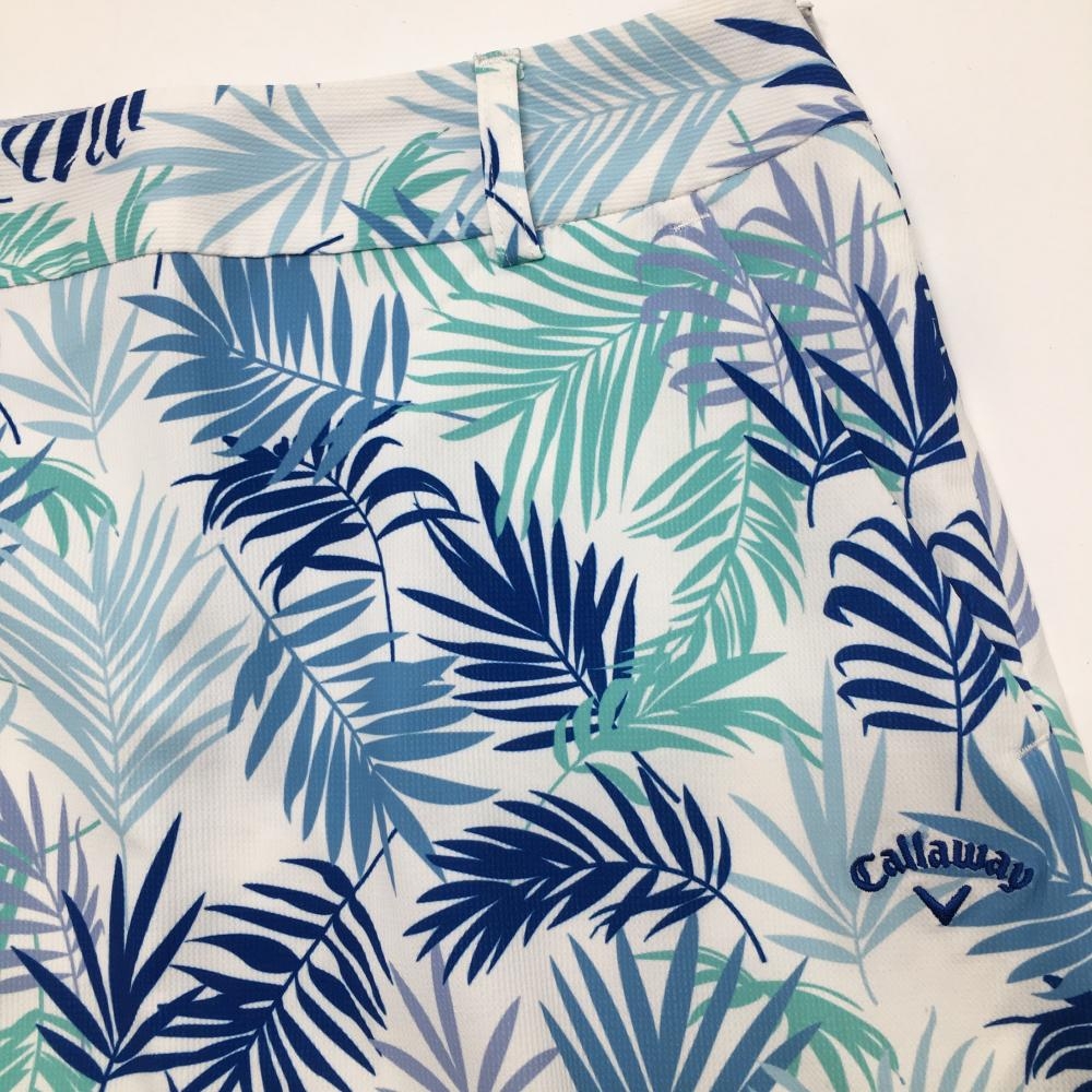 【超美品】キャロウェイ スカート 白×ブルー リーフ柄 織生地 ロゴ刺しゅう レディース S ゴルフウェア Callaway