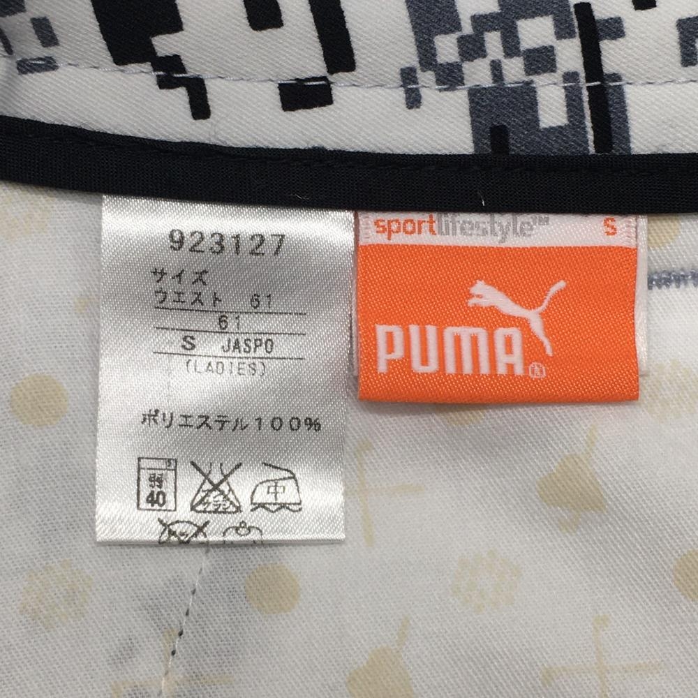 【美品】プーマ スカート 白×グレー 総柄 ロゴ刺しゅう レディース S ゴルフウェア PUMA