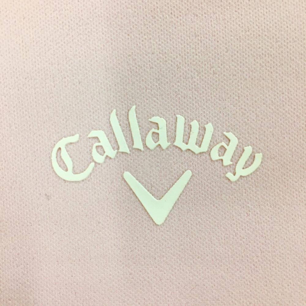 【超美品】キャロウェイ 長袖ハイネックシャツ ピンク 胸ロゴプリント 裏微起毛 レディース S ゴルフウェア 2022年モデル Callaway