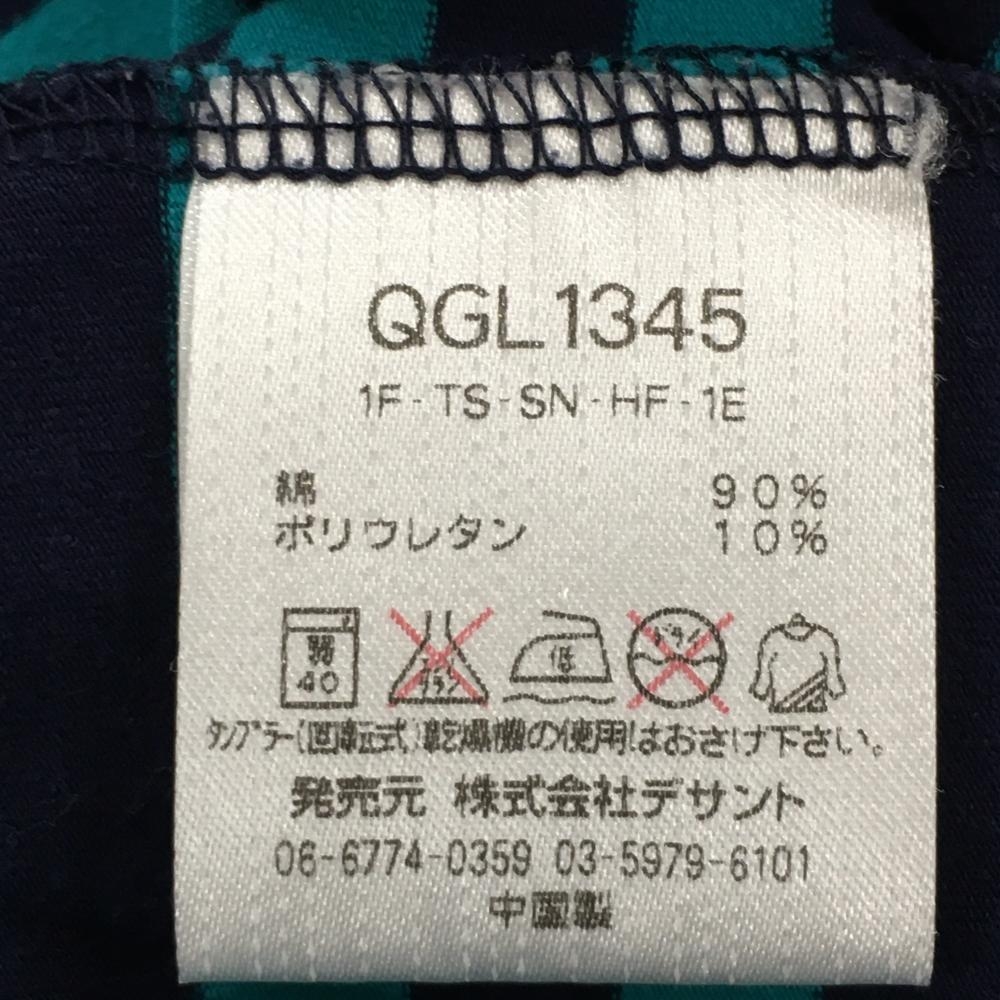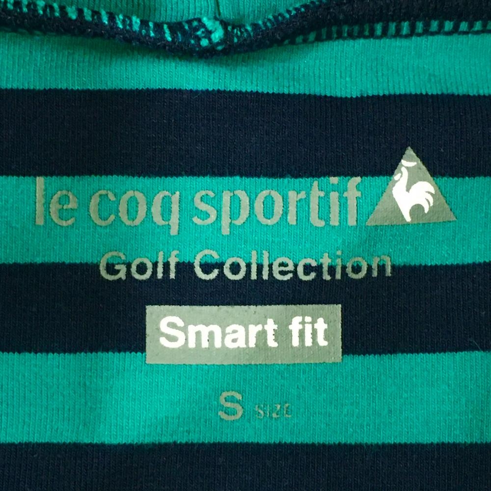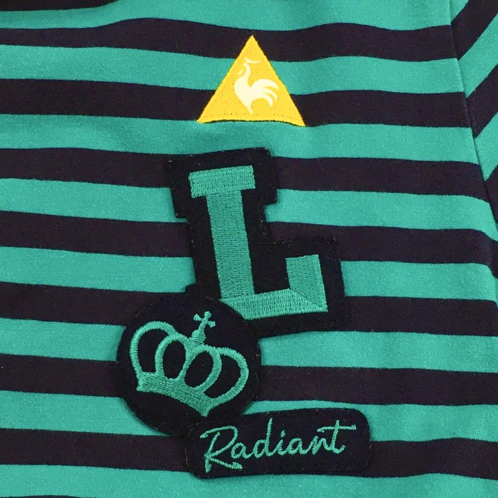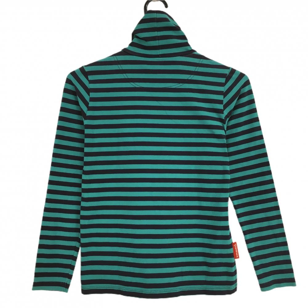 ルコック 長袖タートルネックシャツ グリーン×ネイビー ボーダー 胸ロゴ刺しゅう レディース S ゴルフウェア le coq sportif