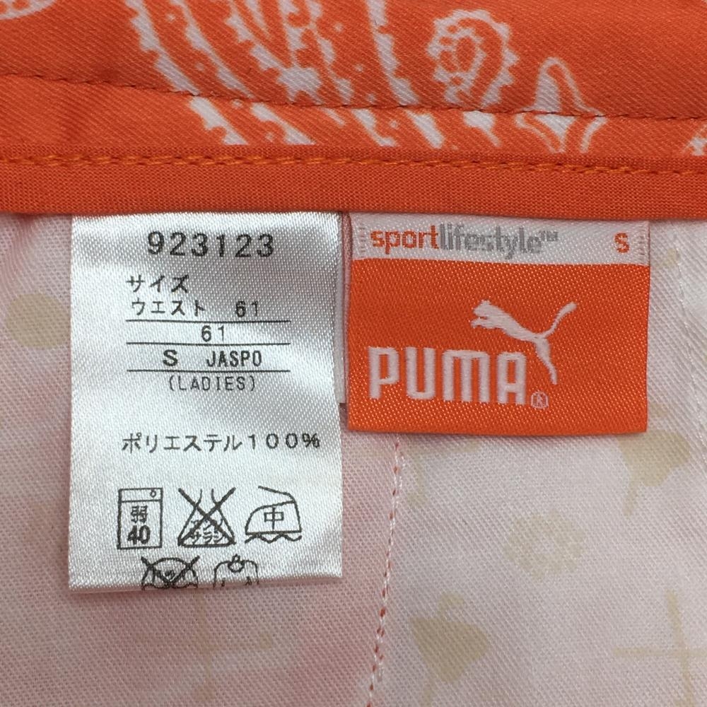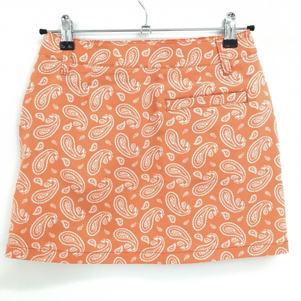 【超美品】プーマ スカート オレンジ×白 ペイズリー柄 ロゴ刺しゅう レディース S ゴルフウェア PUMA