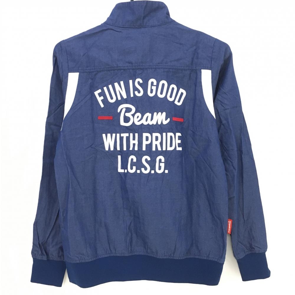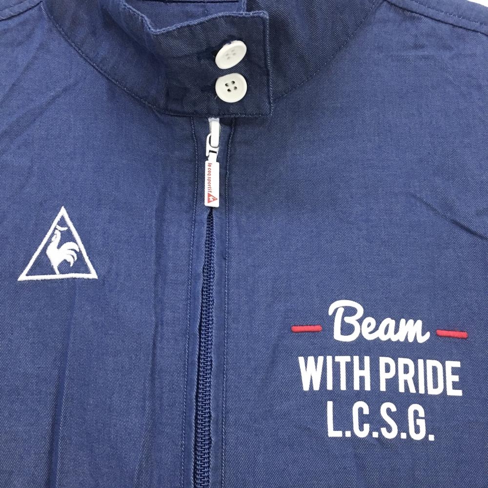 【超美品】ルコック ジャケットブルゾン ネイビー×白 薄手 デニム調 ロゴ刺しゅう レディース M ゴルフウェア le coq sportif