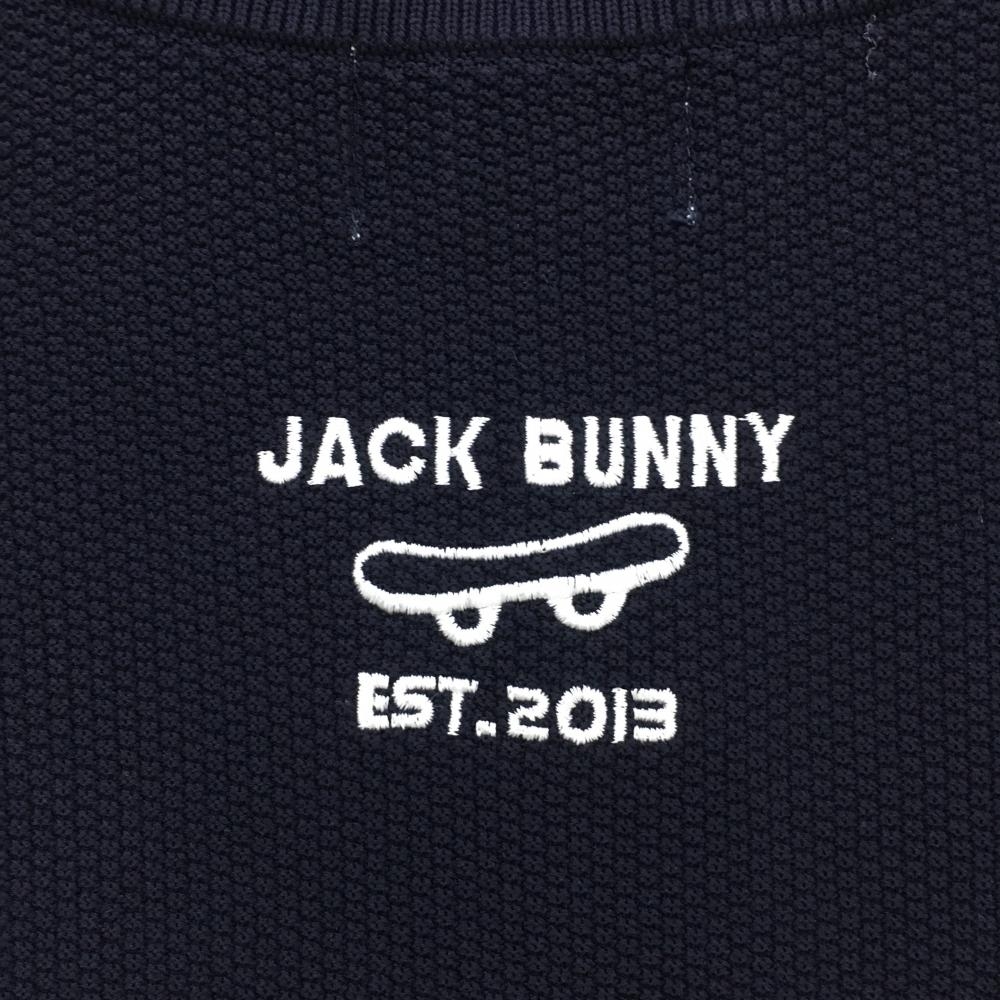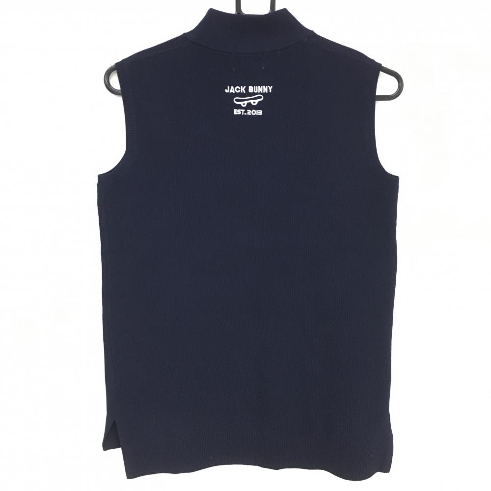 【超美品】ジャックバニー ハイネックニットベスト ネイビー×白 フロント英字 レディース 0(S) ゴルフウェア Jack Bunny
