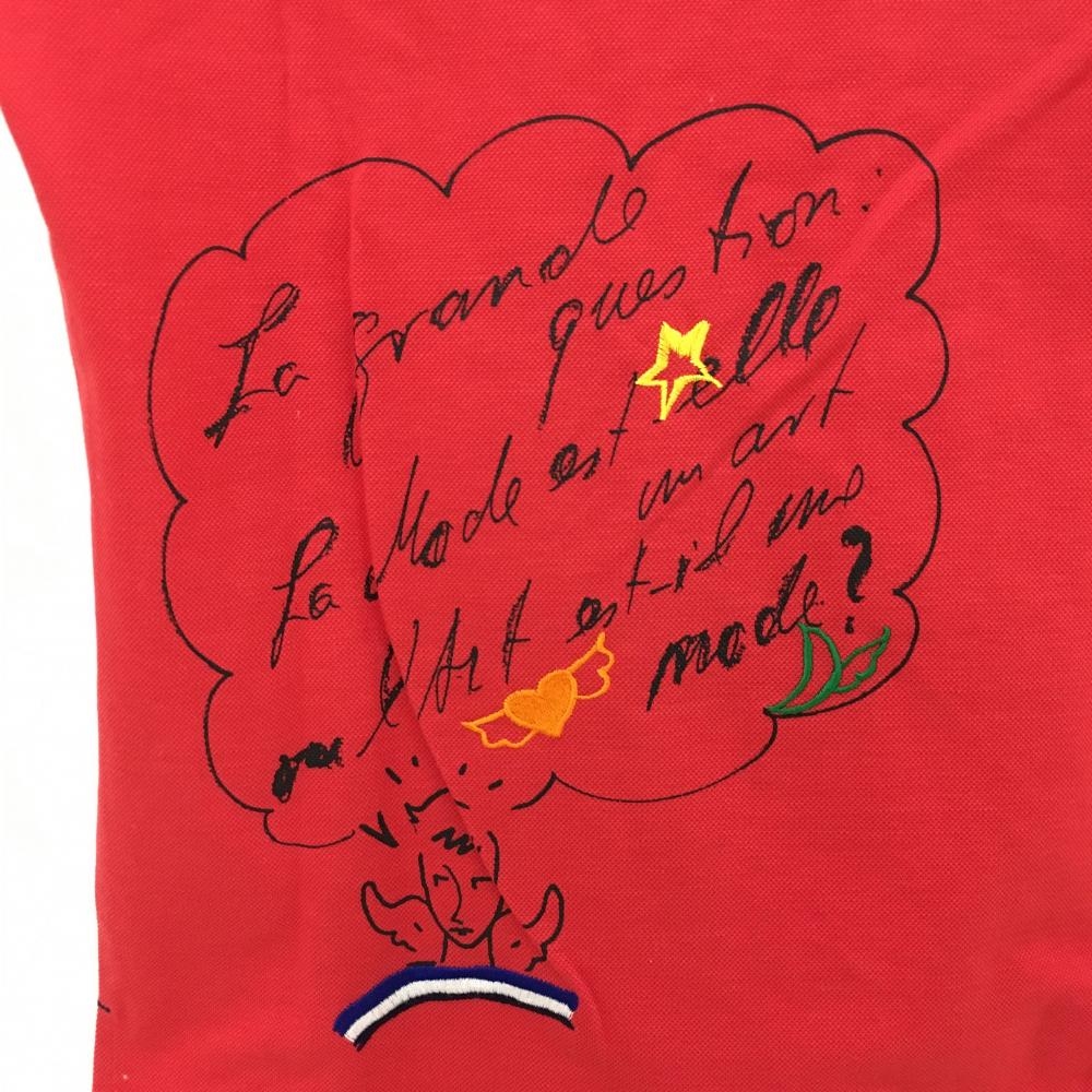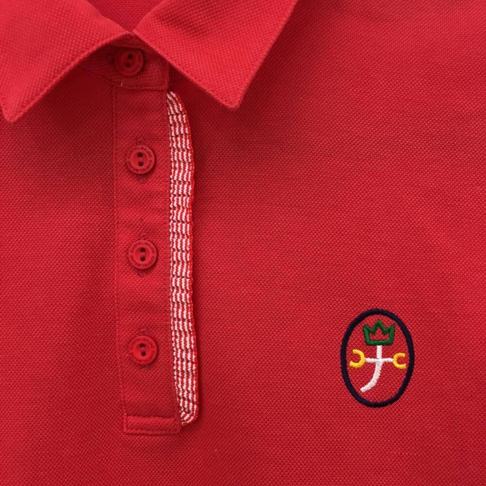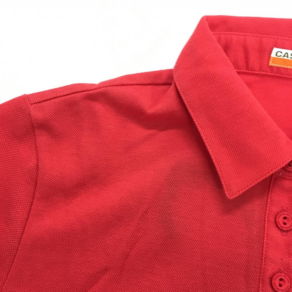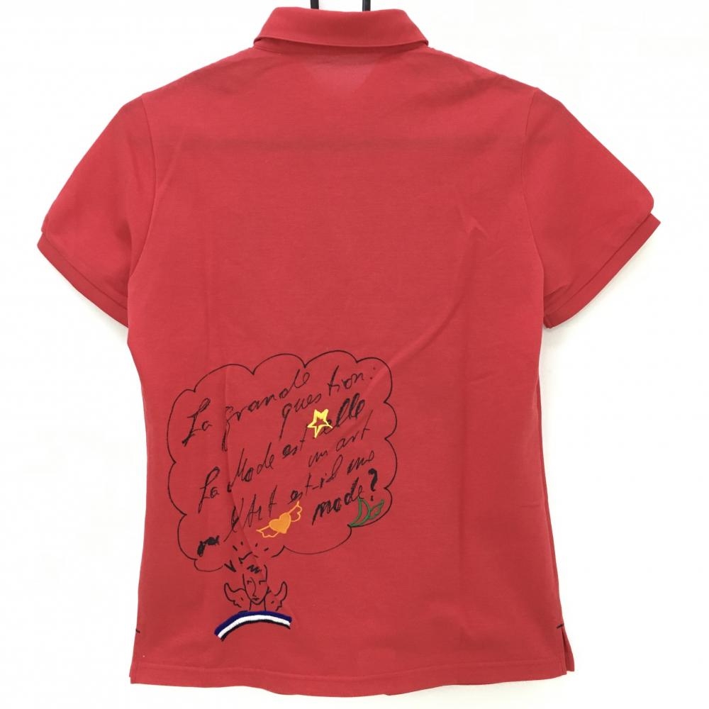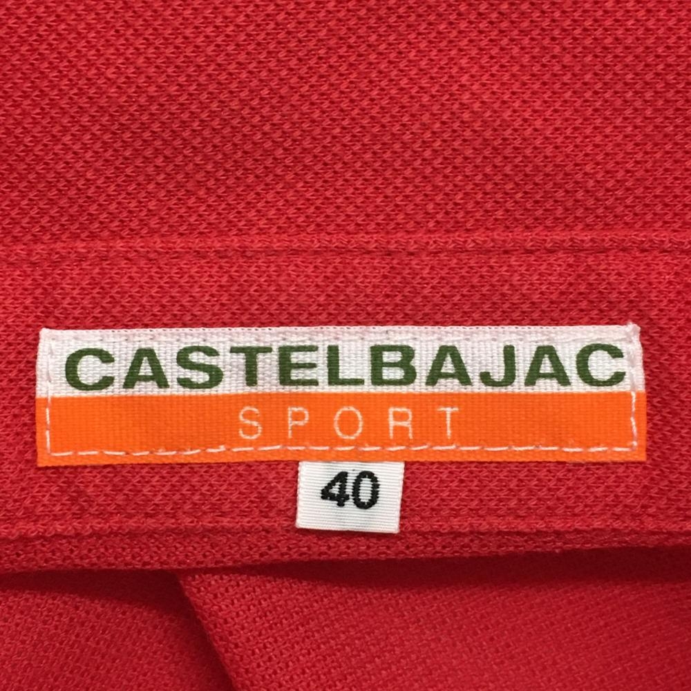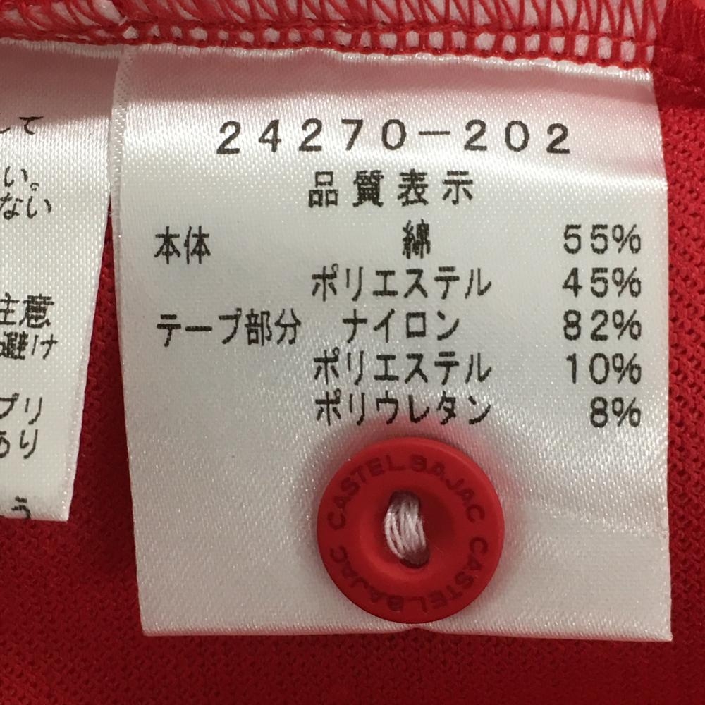 カステルバジャック 半袖ポロシャツ レッド 前立てストライプ バックプリント レディース 40(M) ゴルフウェア CASTELBAJAC