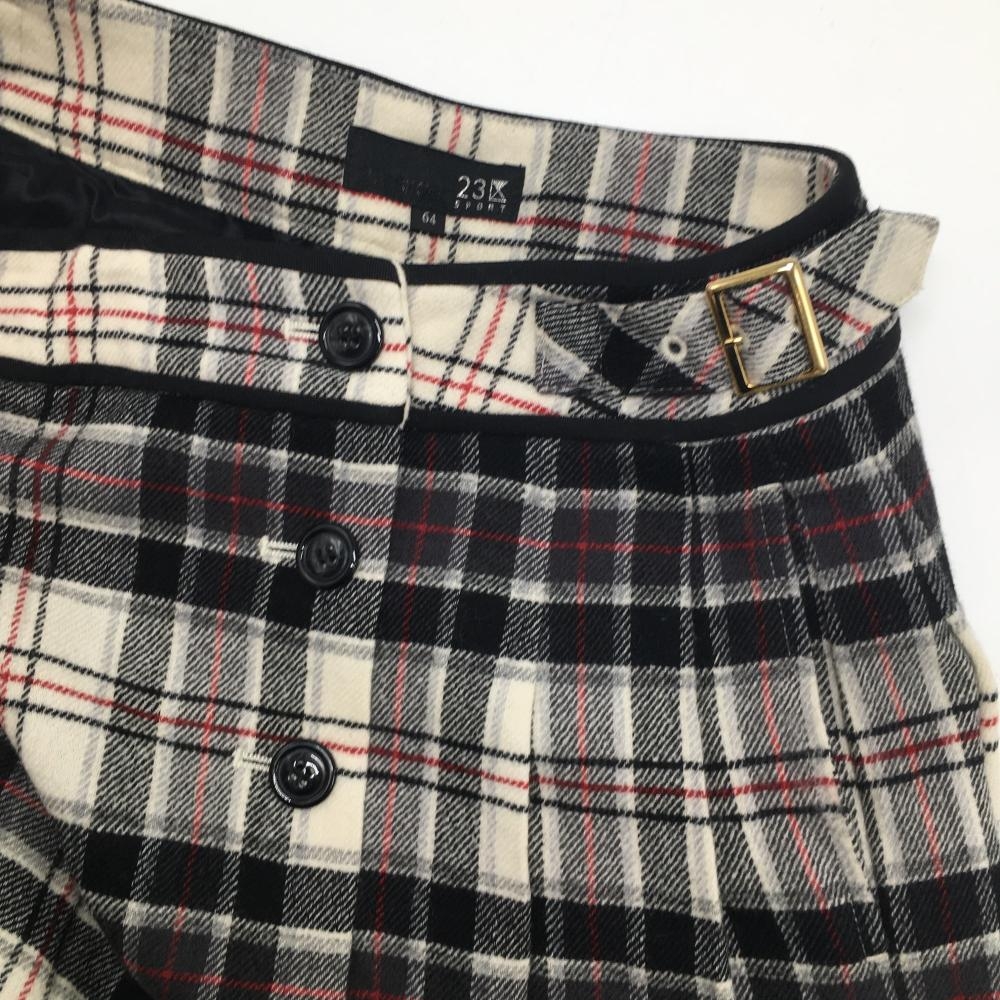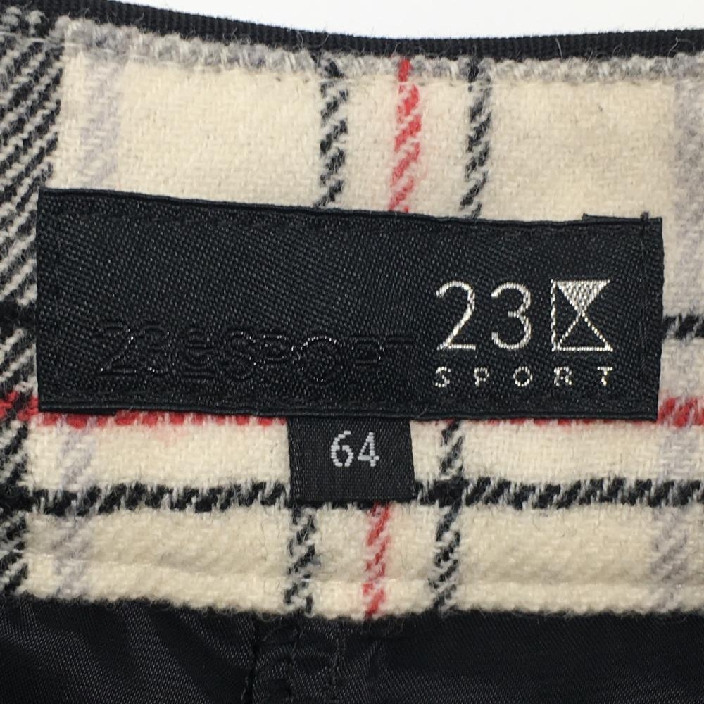 【美品】23区スポーツ ニットプリーツスカート 白×黒 チェック ウール混 内側インナーパンツ レディース 64(M) ゴルフウェア 23区