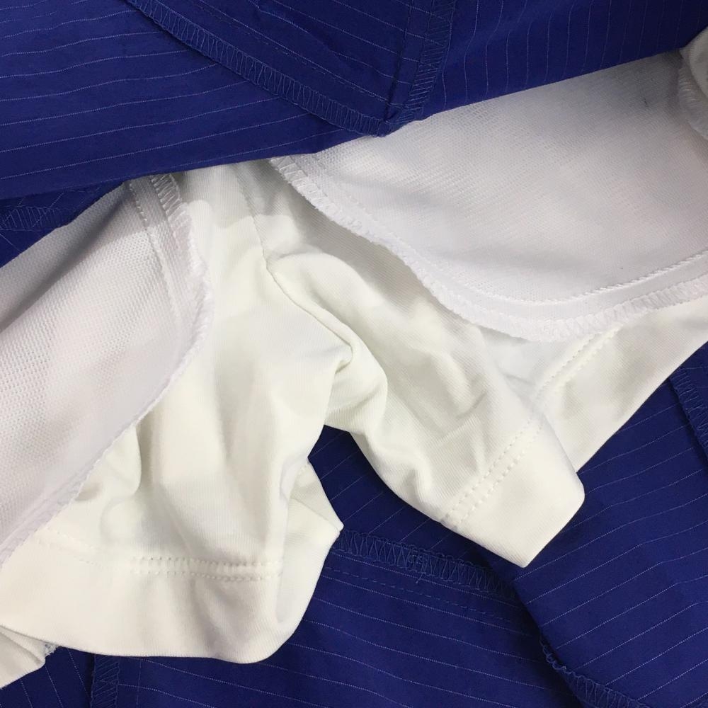 【新品】デサントゴルフ スカート ブルー×白 ストライプ 内側インナーパンツ レディース 61/S ゴルフウェア 2022年モデル DESCENTE