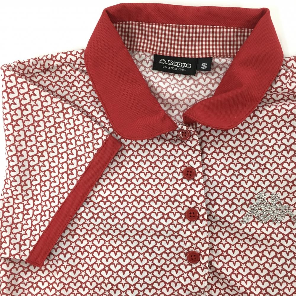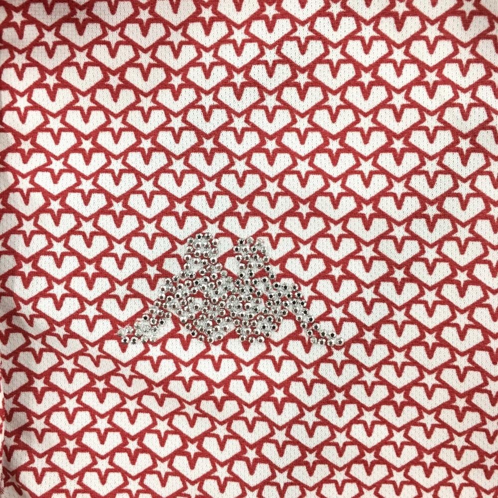 【美品】カッパ 半袖ポロシャツ 白×レッド 星柄 ロゴラインストーン レディース S ゴルフウェア Kappa